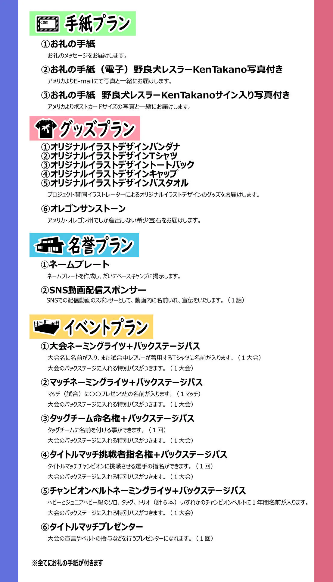 このプロジェクトを通じて、若手プロレスラーの育成とファンとの交流を深めていくことを目指しています。次のステップなどたくさんの楽しい企画を考えています。皆さまの温かいご支援を心よりお願い申し上げます。