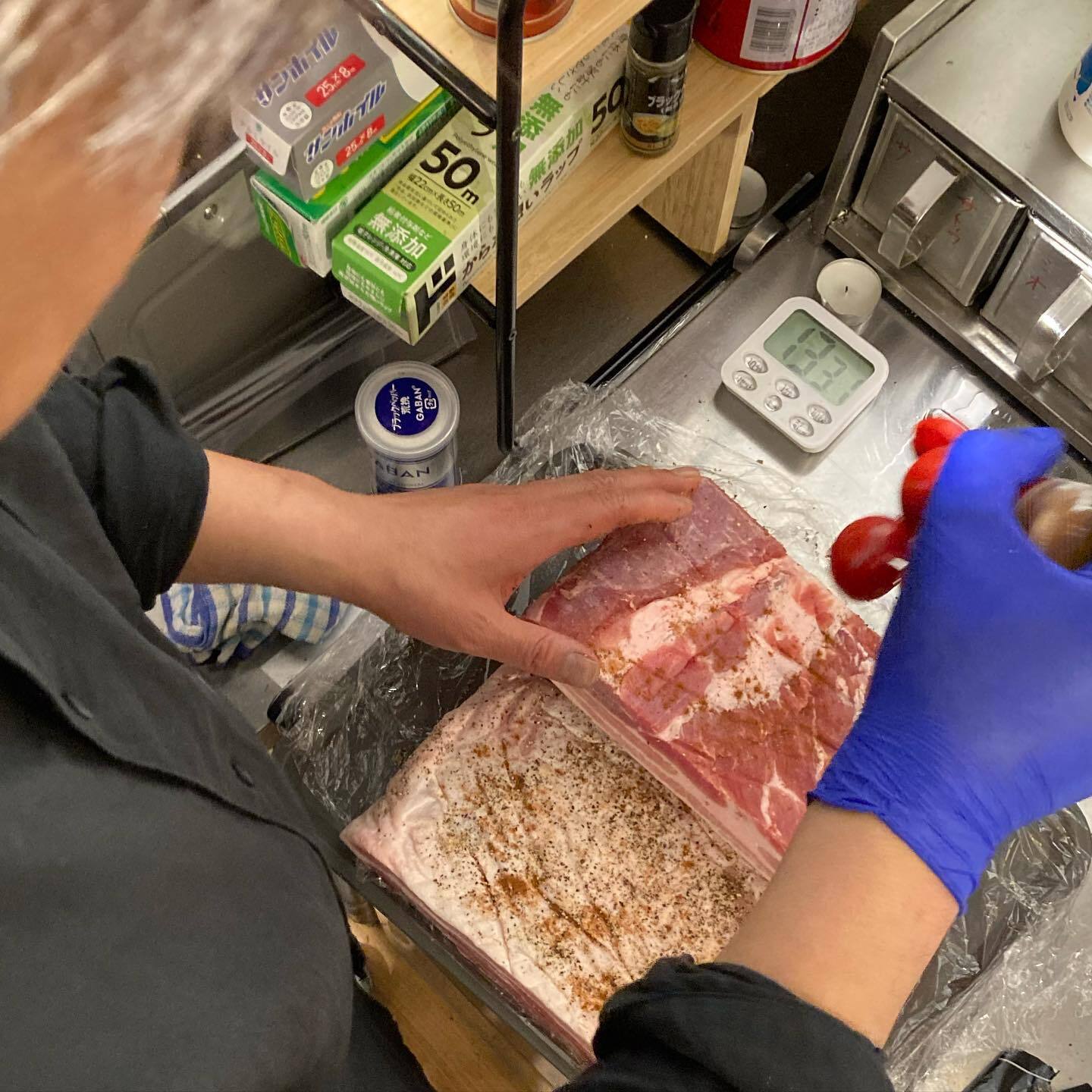 豚肉を処理するシェフ高橋!
