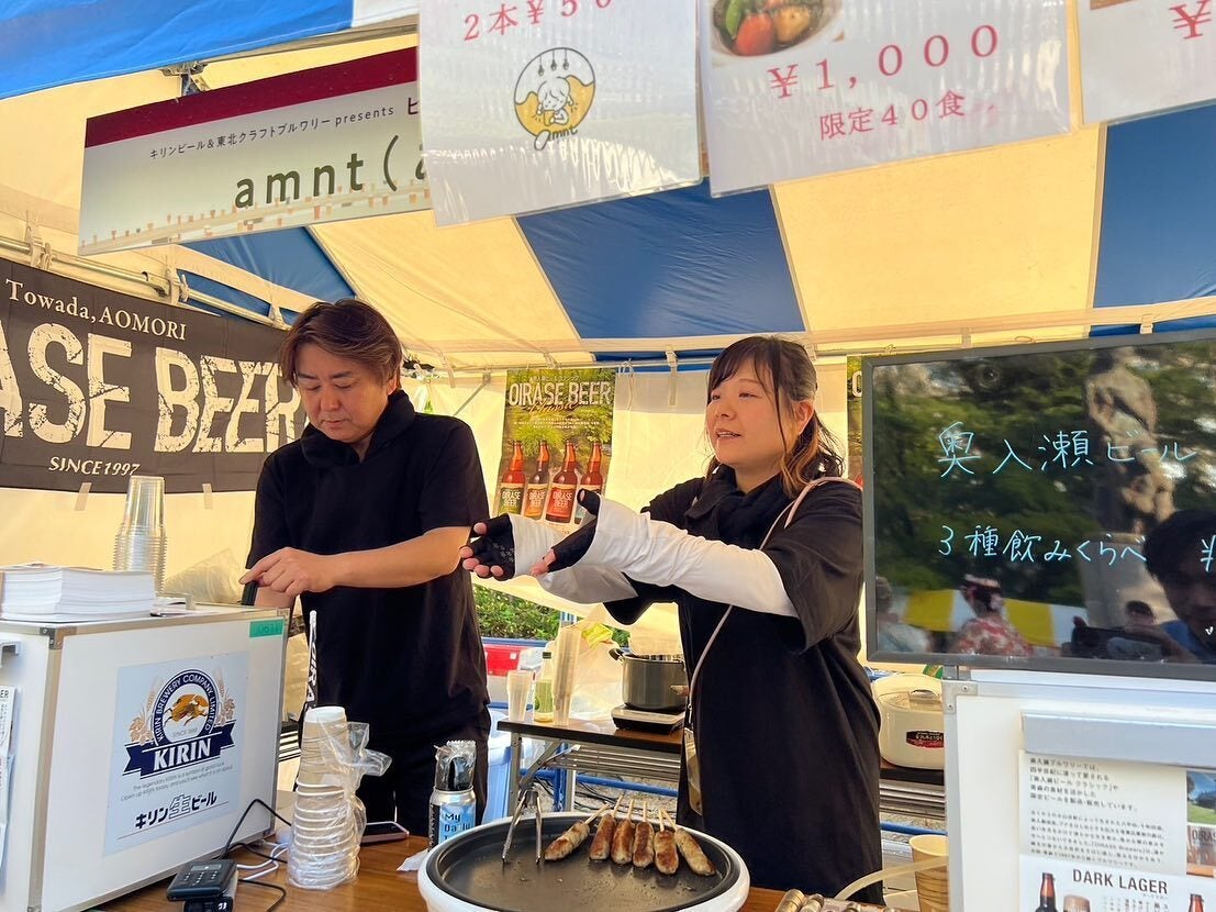 私たちは、青森県のクラフトビール「奥入瀬ビール」をもって販売しています。特に、飲み比べも人気です。