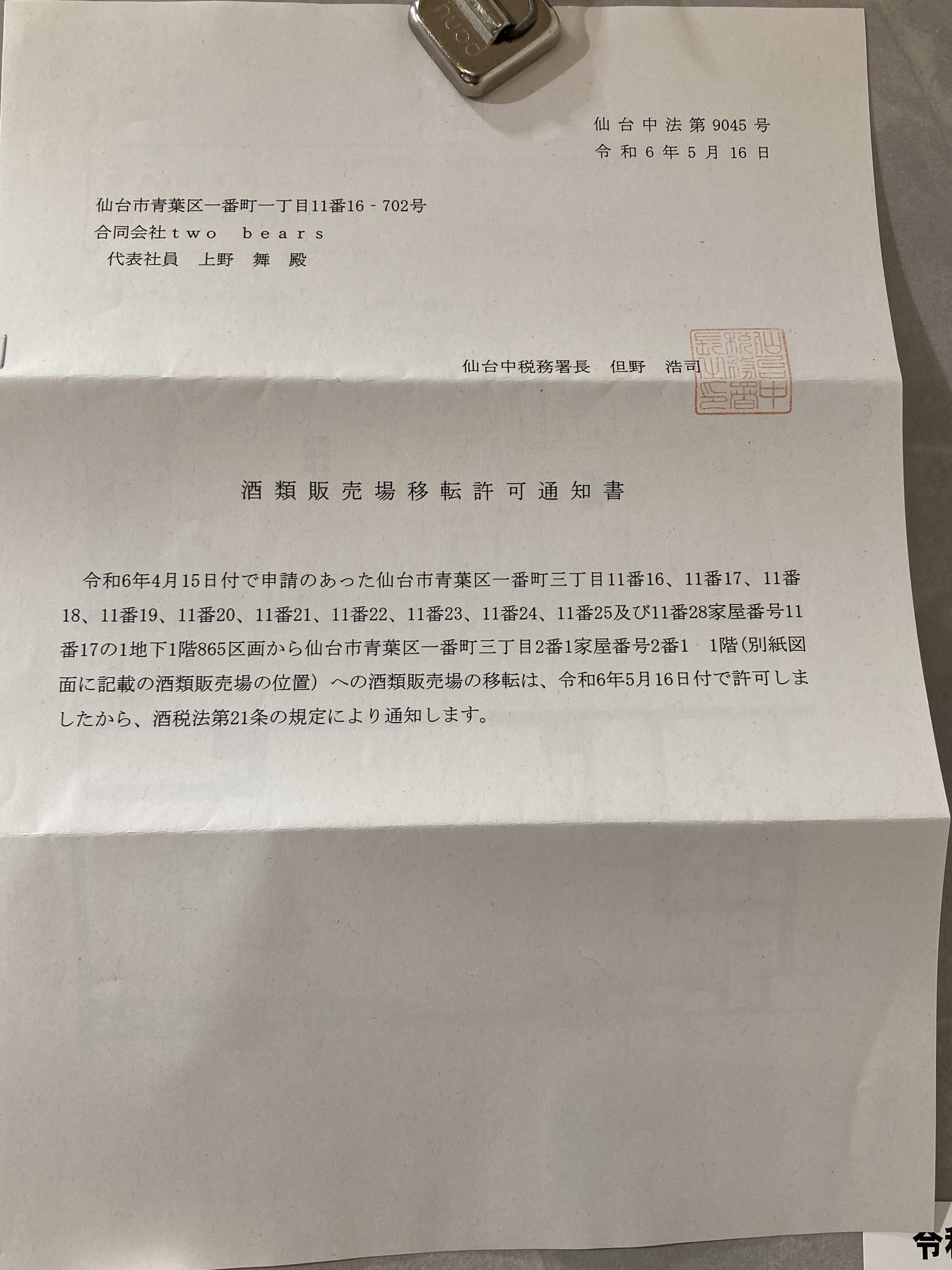 苦労しましたが、この度無事移転先の新店舗でもお酒の小売りができる免許がおりました。