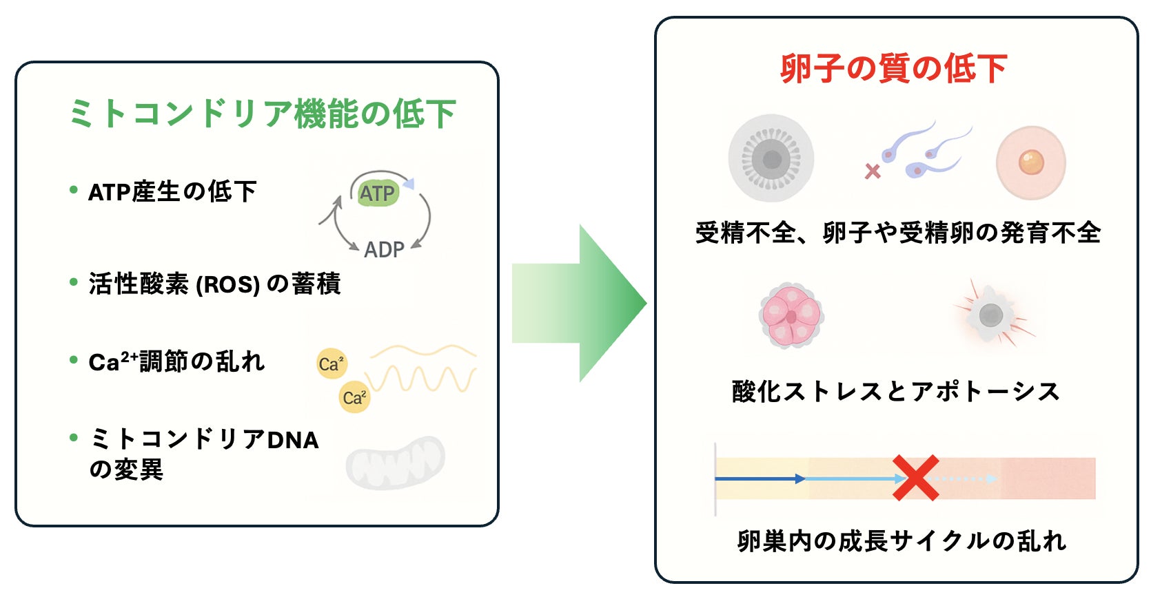 近年の研究から、ミトコンドリアが加齢だけでなく、精子や卵子のコンディションにも深く関わることが明らかになってきました。