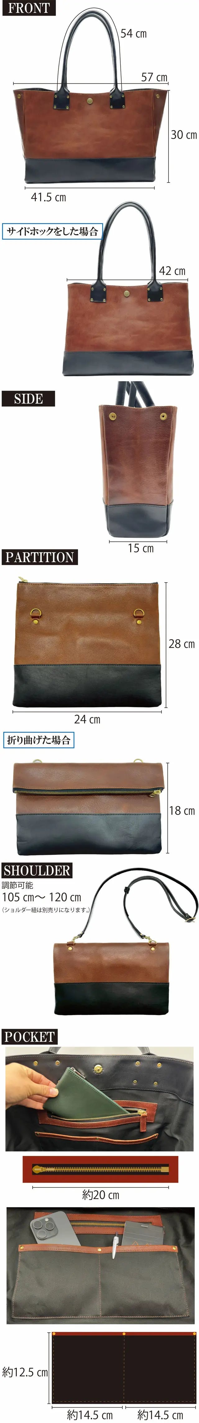 サイズ:縦約30㎝×開口部約54㎝×底約41.5㎝×マチ約15㎝