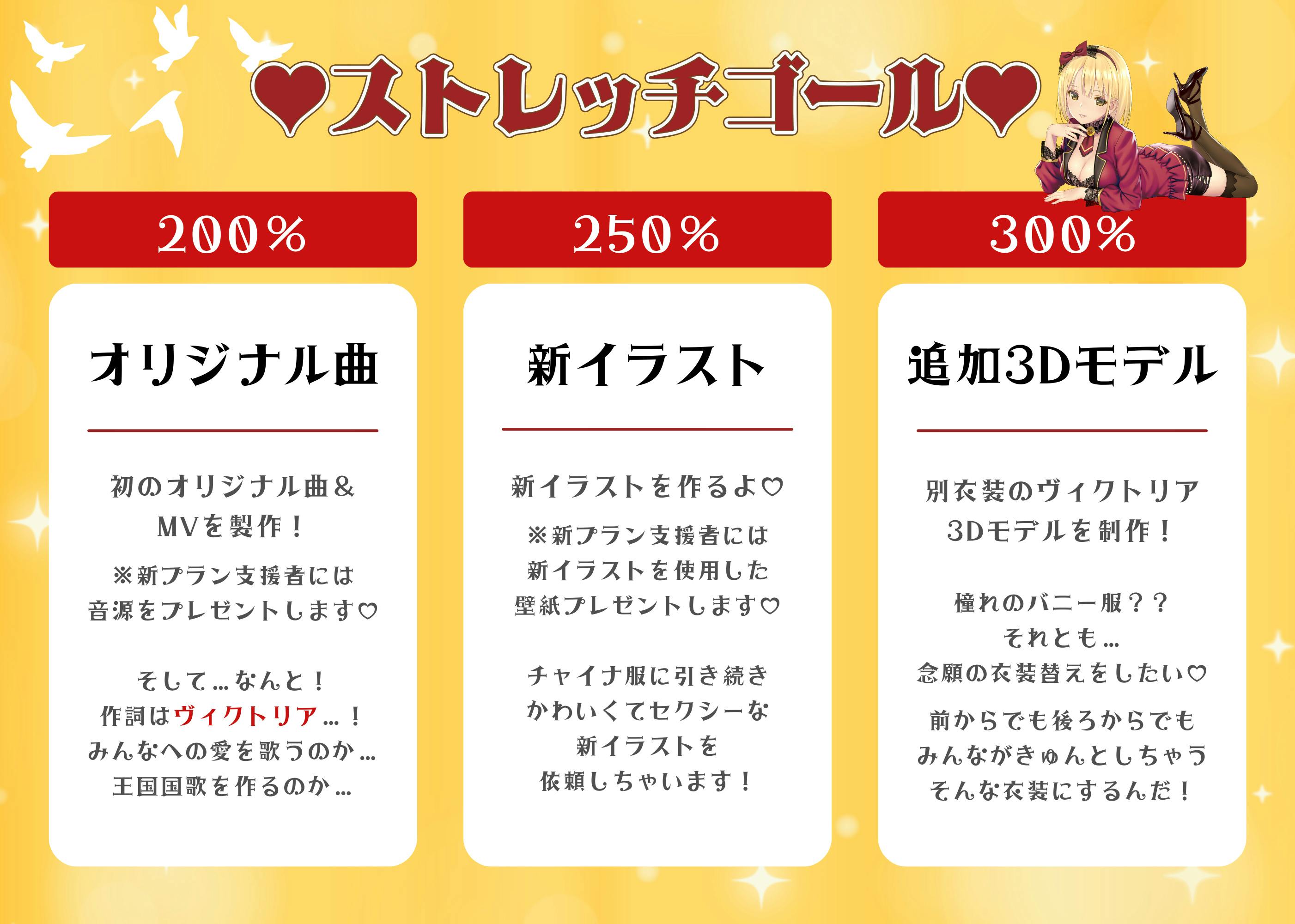 どのゴールもヴィク民たちの希望を聞きながら理想のオリ曲、新イラスト、追加モデルを製作していきたいと思ってるよ!