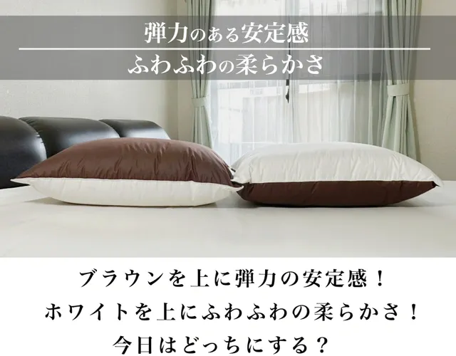 ※ホワイトを上にした使用時は従来通りのふわふわダウンピローです。