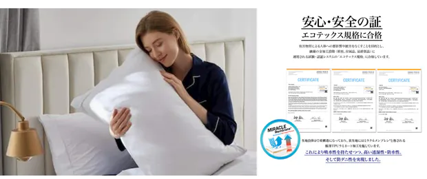 ■安心の証「エコテックス規格」に合格有害物質による人体への悪影響や被害をなくすことを目的とし、繊維の全加工段階(原料、付属品、最終製品)に適用される試験・認証システムの「エコテックス規格」に合格しています。敏感肌の方でもご安心してお使いいただけます。
