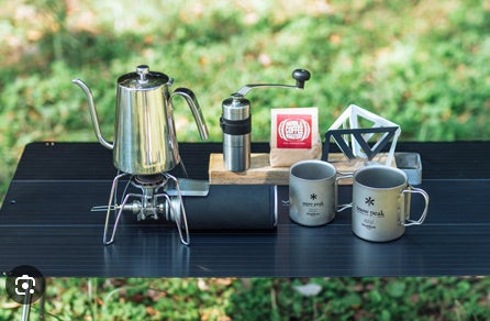 ゆっくりとドリップし淹れたてのコーヒーをウッドデッキで楽しむ。