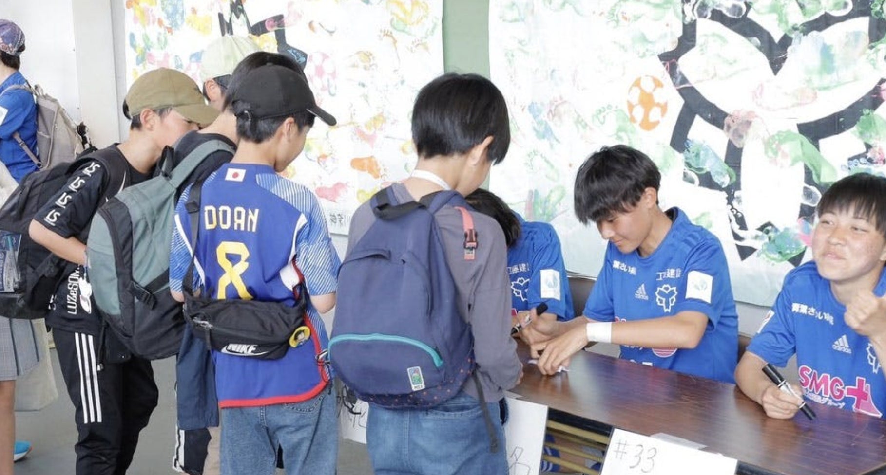 また、図工の一環として、ホームゲームの際に壁に張り出す応援幕を一緒に制作しました!素敵な横断幕が完成しています!