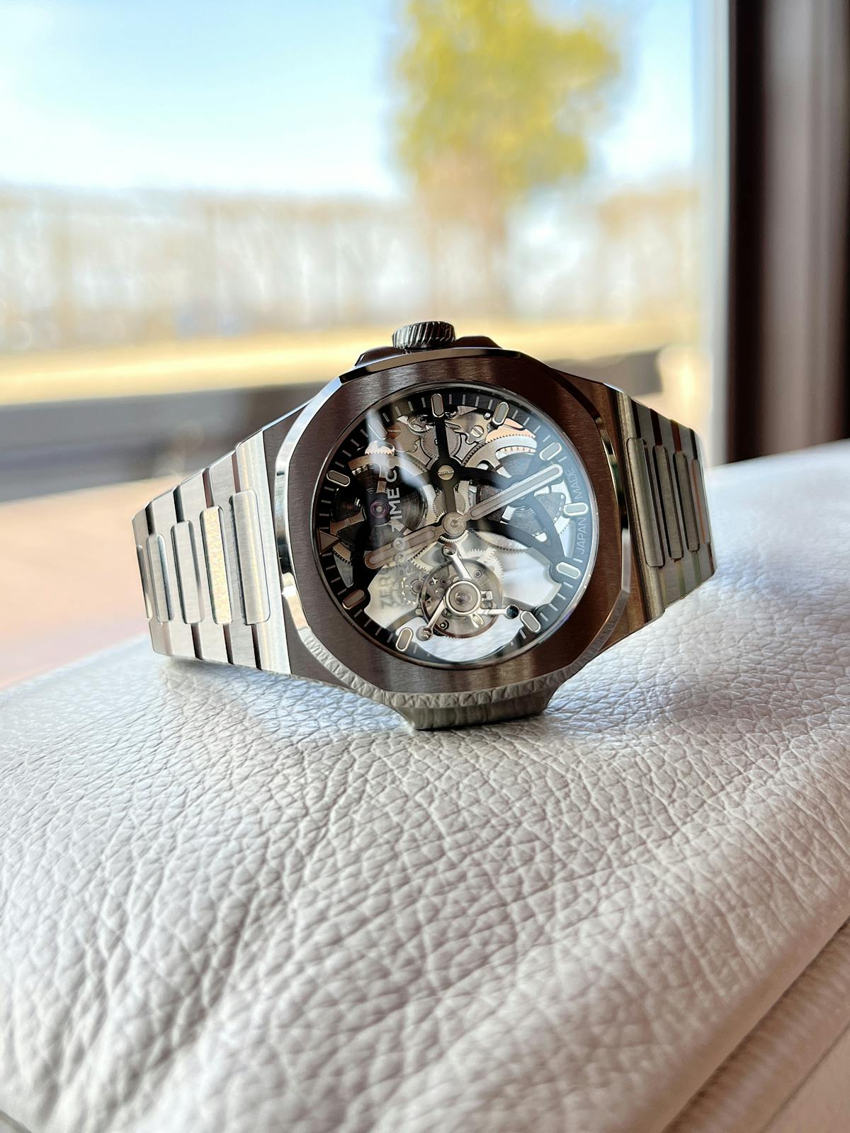 T7はこれまで開発したトゥールビヨンのなかでも相当な苦労のあったモデルとなります。T7で11作目のトゥールビヨンとなりますが楽々と開発が進むことはありません。T7は特にケースやブレスレットの仕上がりこだわり、たくさんの時間と費用とを投下することになりました。結果、満足できるものに仕上げられたと自負しております。