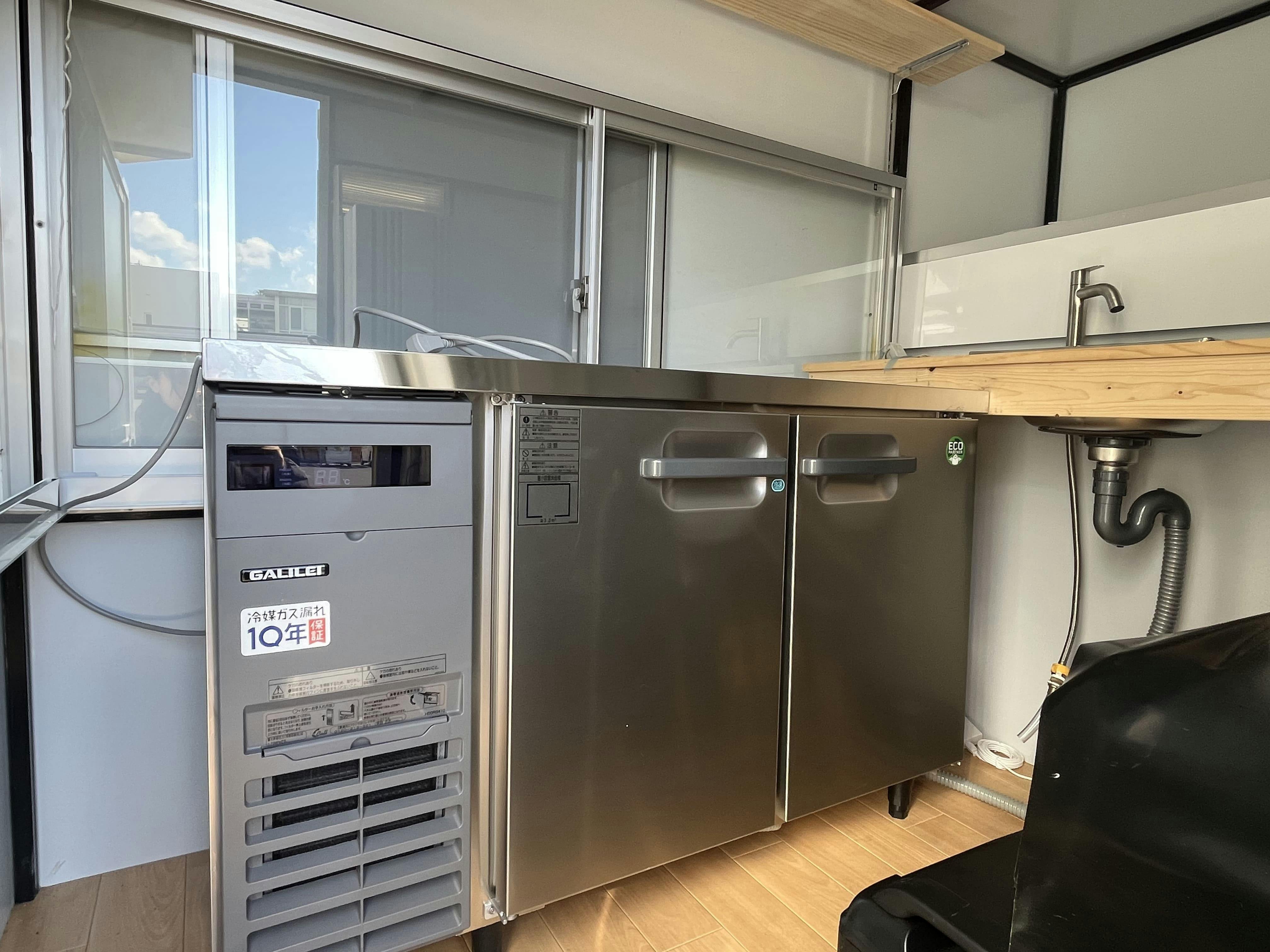 先日整備を終えたキッチンカーをジョルノスに運んでもらい、冷蔵庫の搬入をしました。中の設備もだいぶ整い、キッチンカー運用に向けて着々と準備が進んでいます。