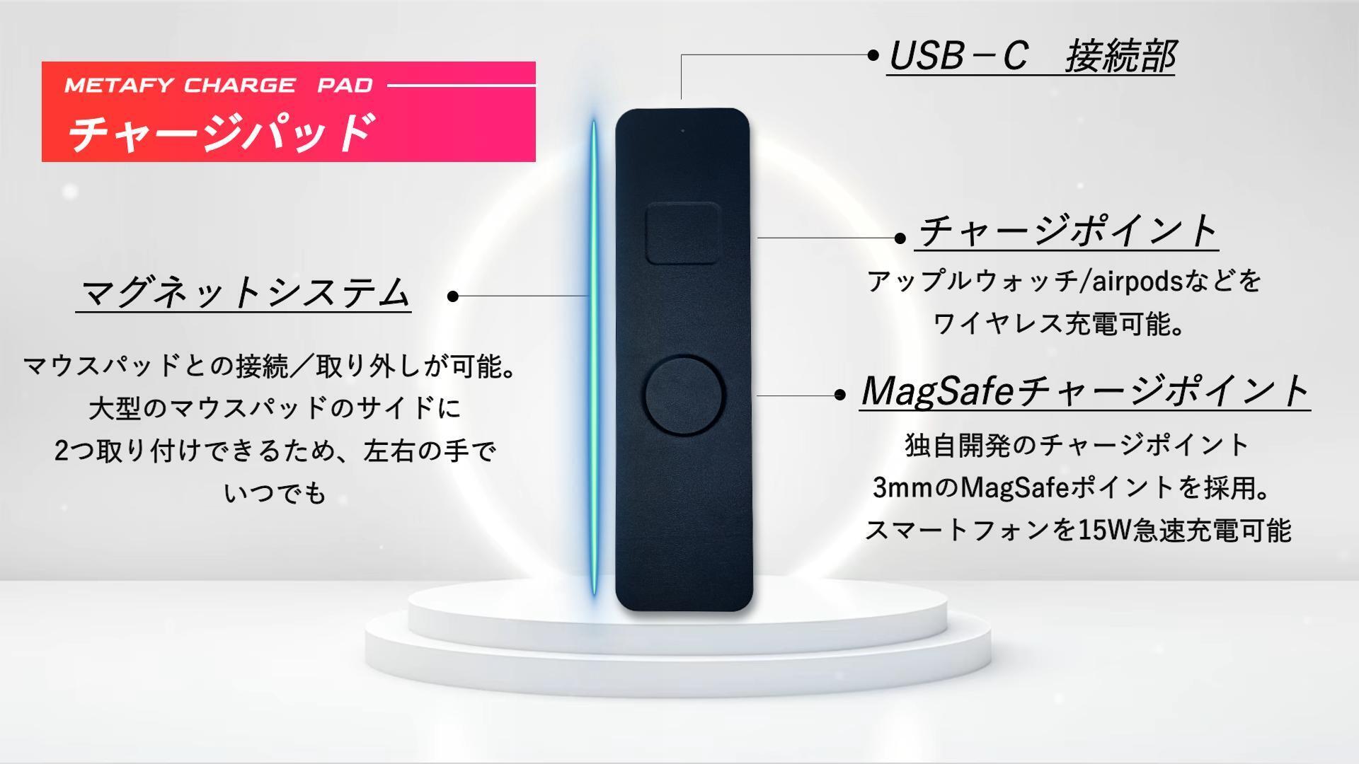 さらにそれぞれのチャージパッドにはマグネットを採用しており、マウスパッドから自由に取り外し可能だ。