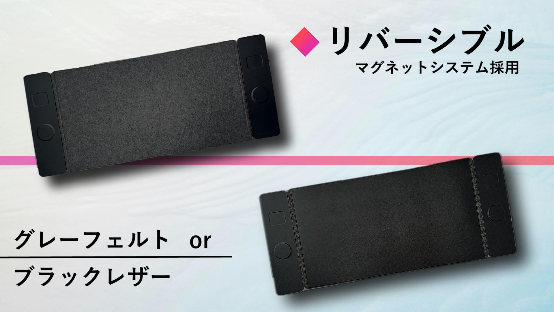 ●リバーシブルマウスパッド: グレーフェルト生地とブラックPUレザーの2面があり、お好みや用途に合わせて使い分けが可能。