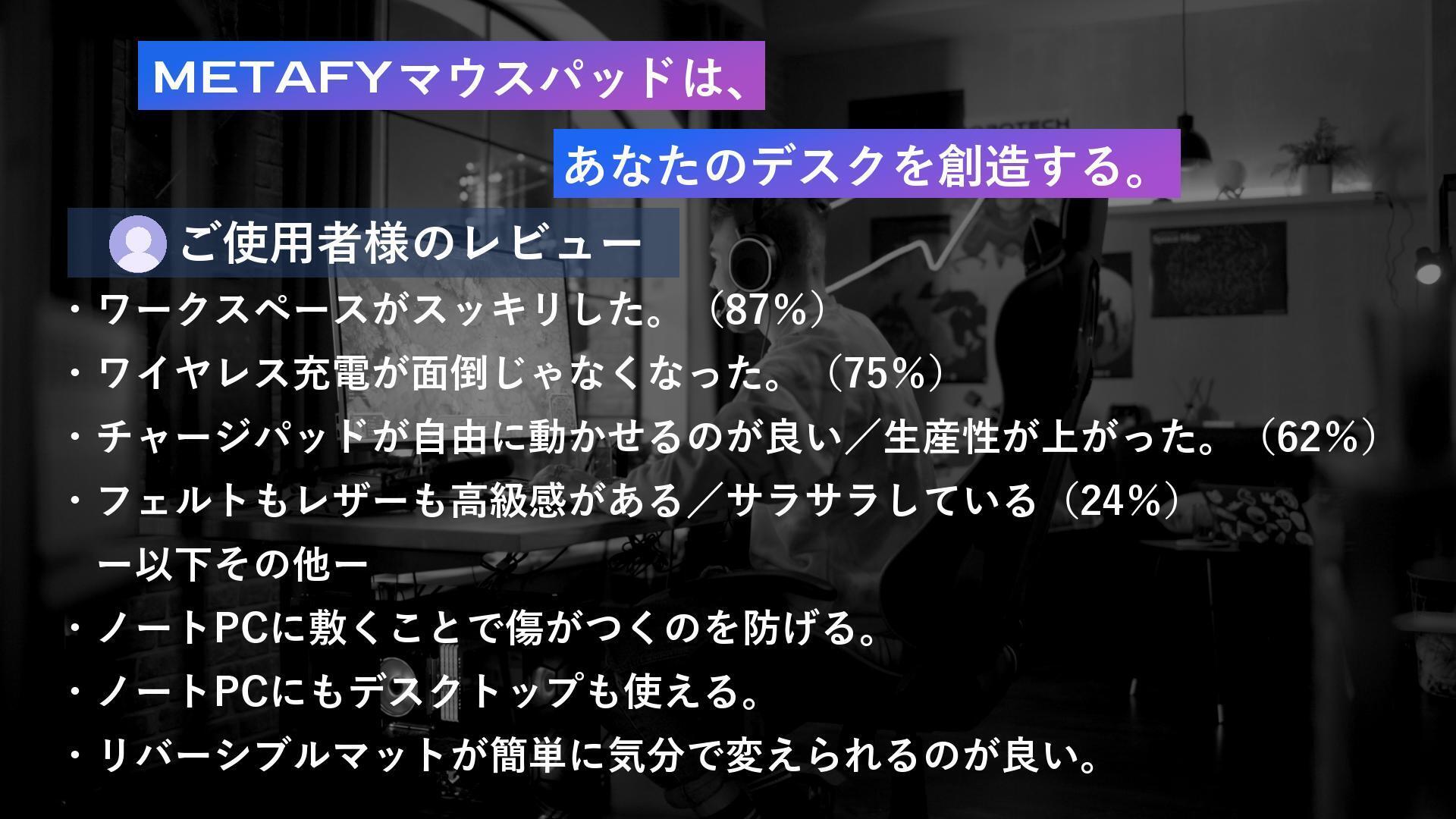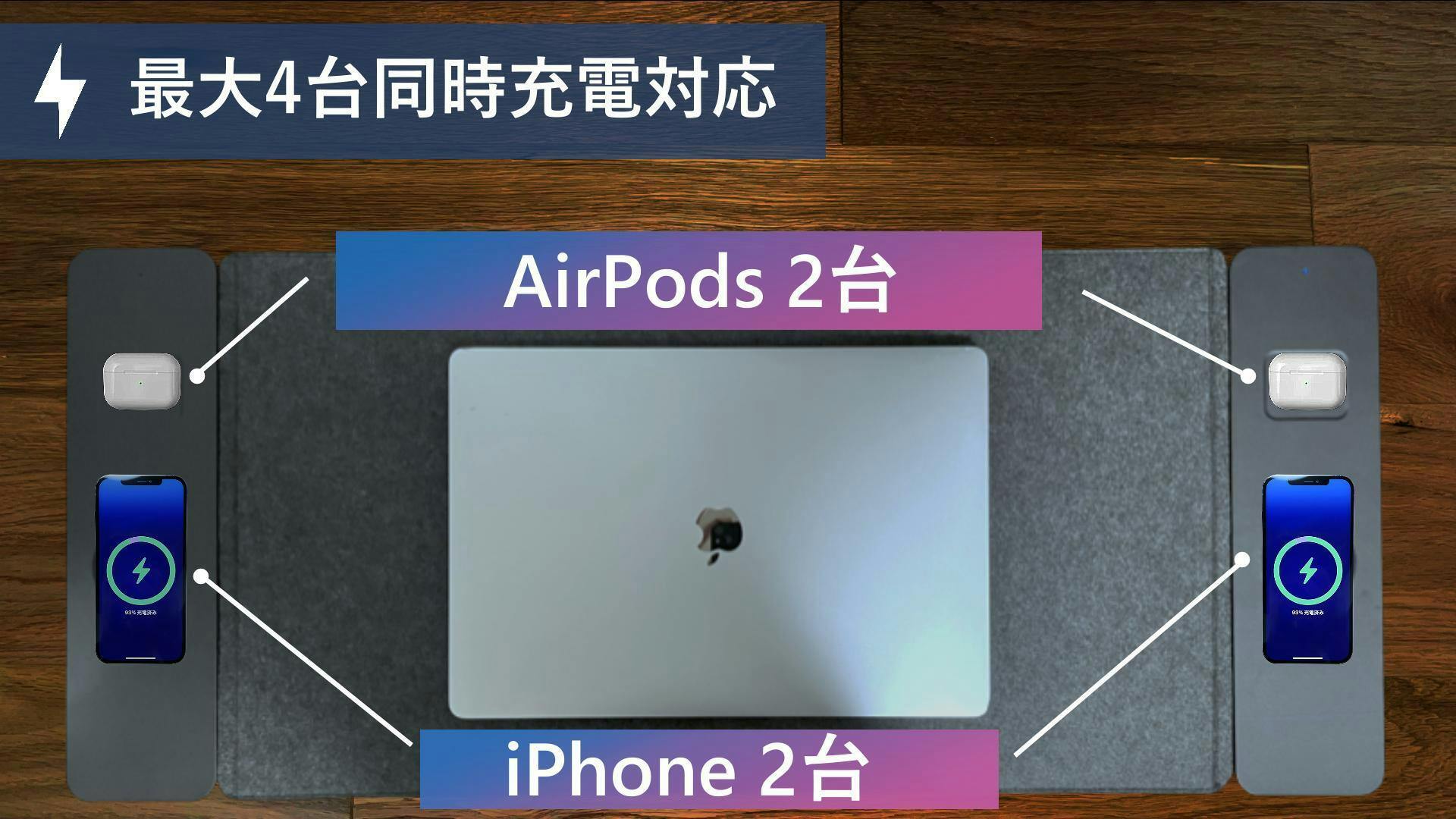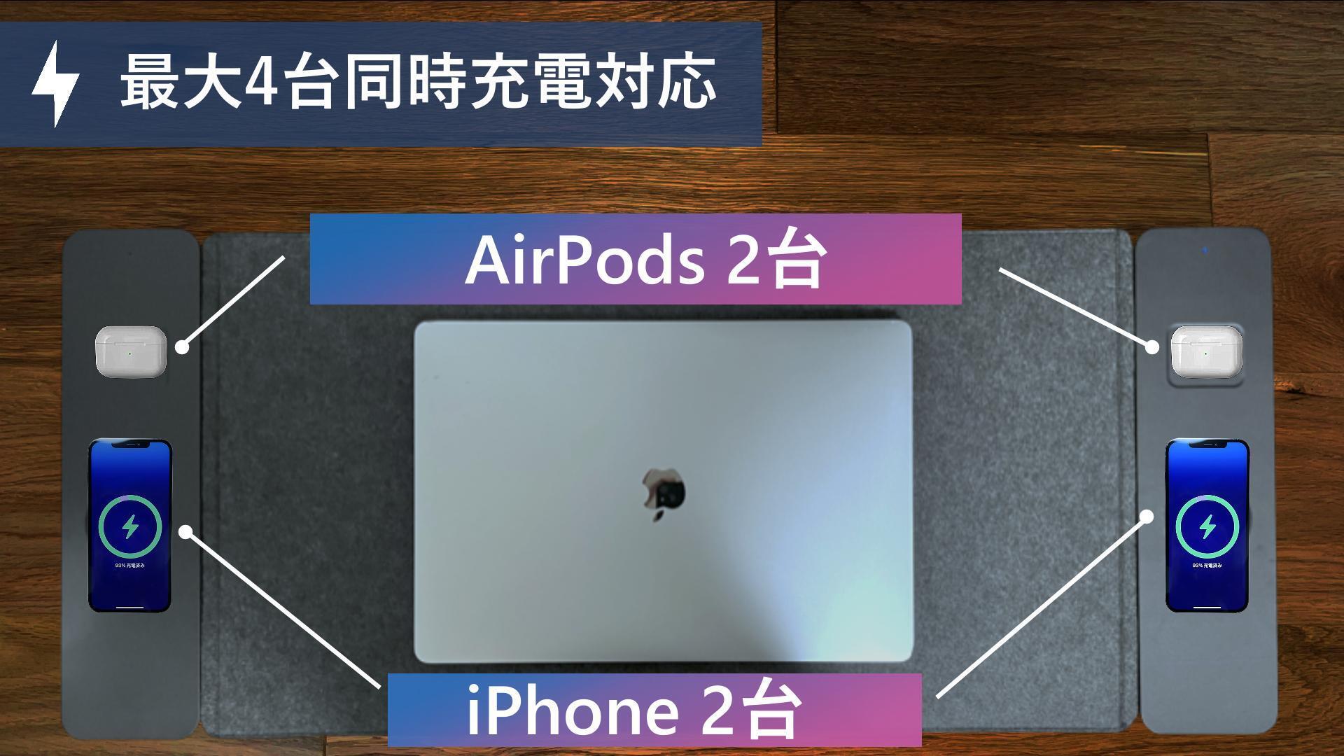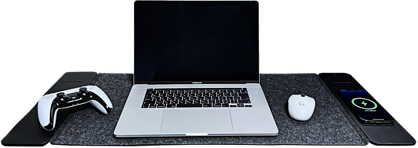 METAFY製のデスクマットであれば、両サイド、左右にそれぞれチャージパッドを採用したことで、右手でも左手でも充電可能となった。