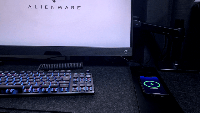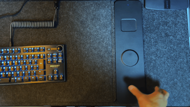 チャージパッドはモニターの横に縦置きしたり、マウスパッドから離れた位置に配置することも可能だ。