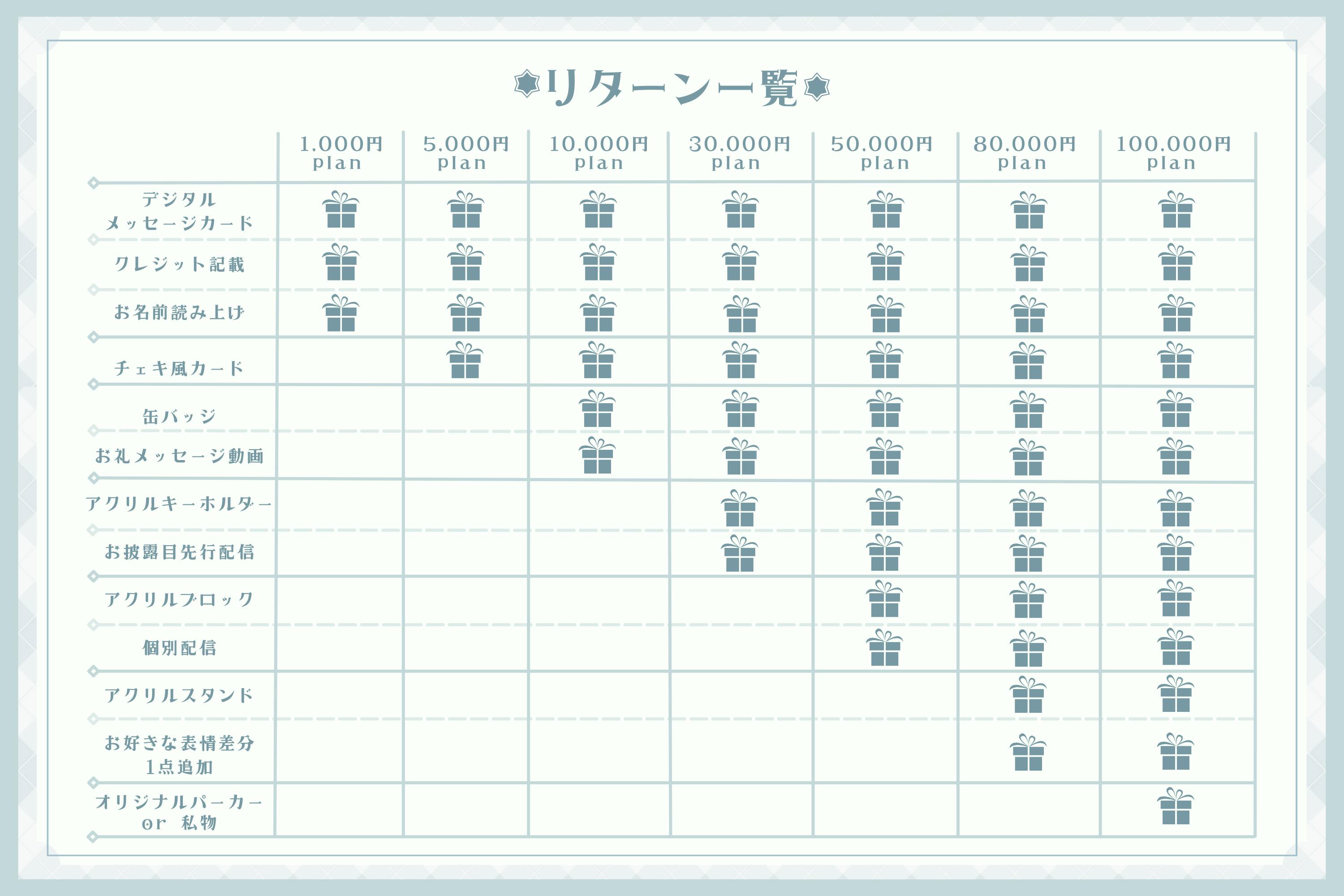 リターンについて、デジタルグッズとリアルグッズをお渡し予定です✧*。