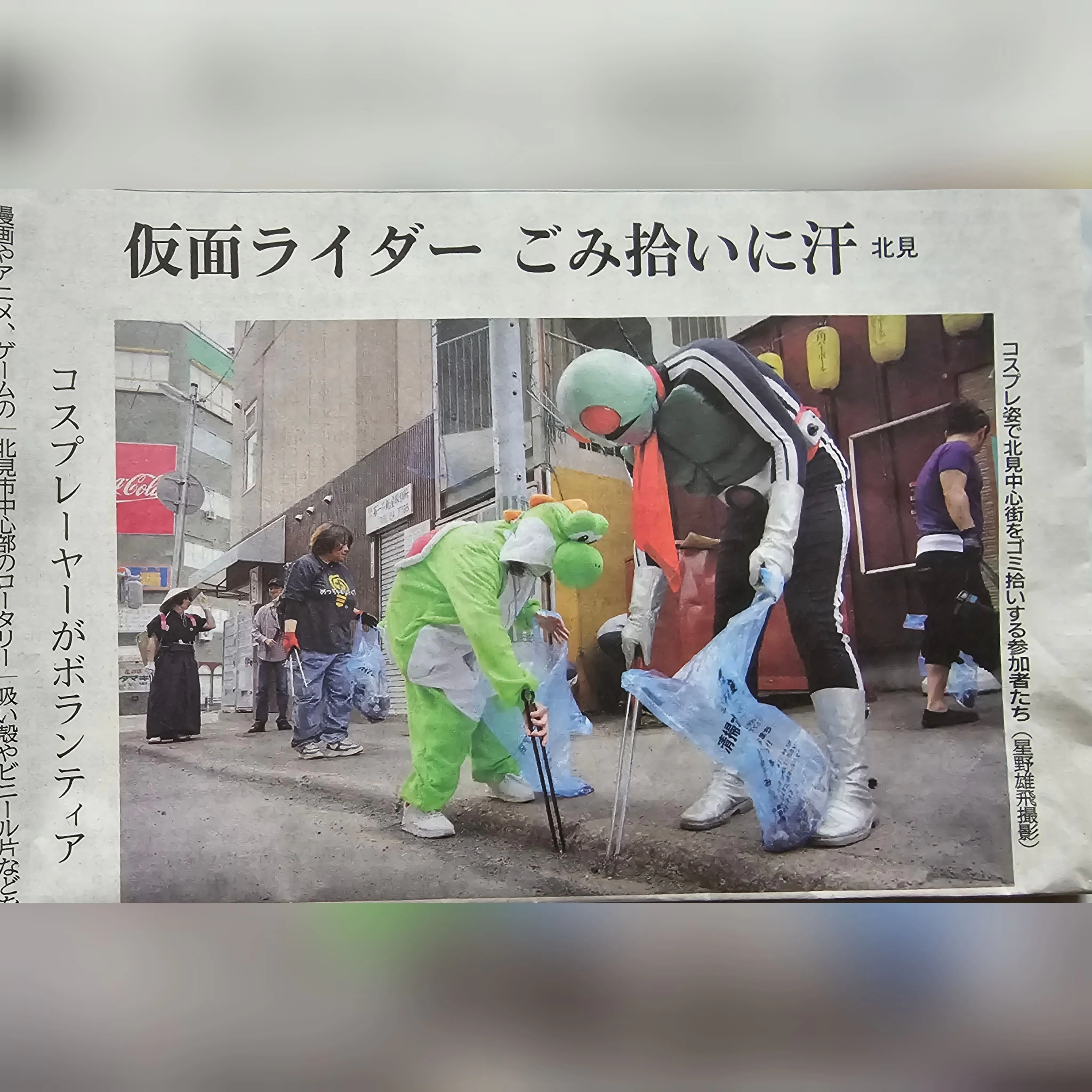 このイベントは各々コスプレや仮装などをして街のゴミを拾う今では恒例のイベントとなっています!主催者の山樹氷の高桑社長が数年前から催され僕自身も第1回目より参加しているイベントでして、ゴミ拾いの最中に行き交う一般の方からの熱い眼差しやおじちゃんやおばちゃんから「頑張ってね~」と声をかけて頂いたりと妙な快感になっています笑