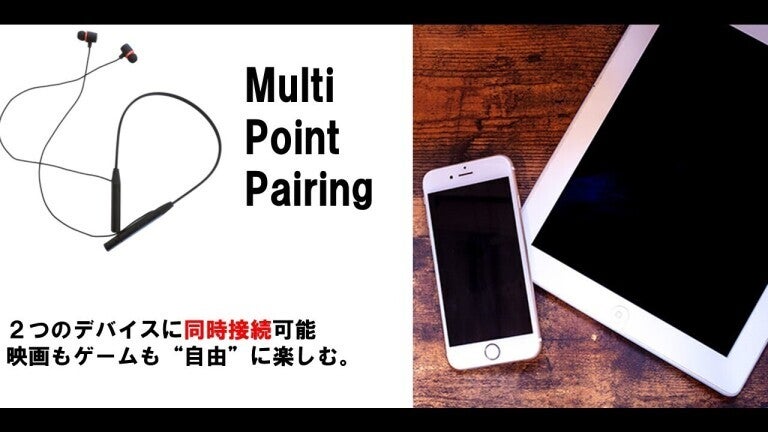 マルチポイントペアリングも対応。一度に2つの端末に接続可能です。