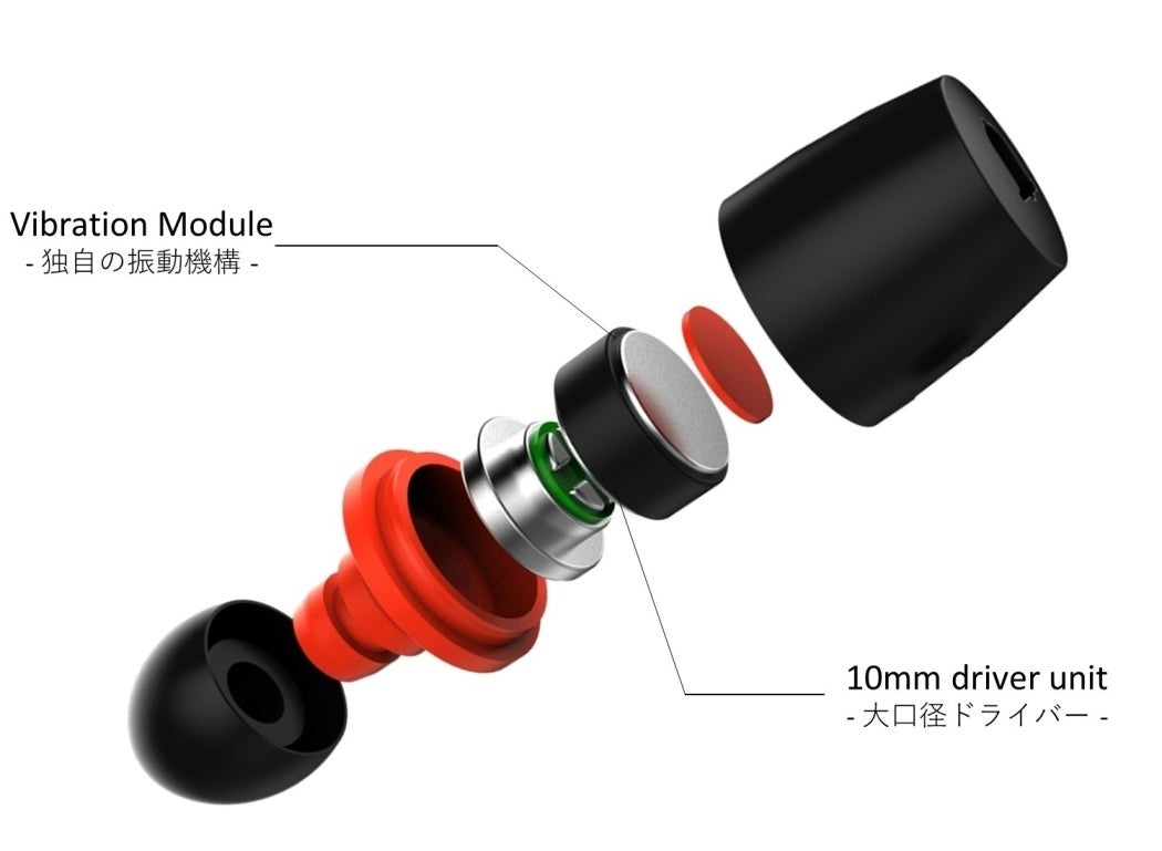 この振動モジュールは、サウンドを創り出すダイナミックドライバーと対に配置することで