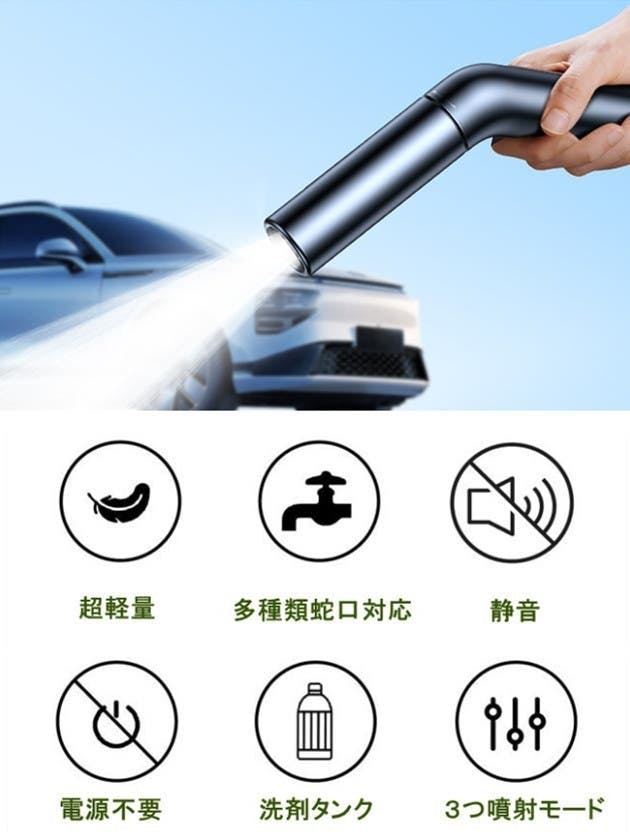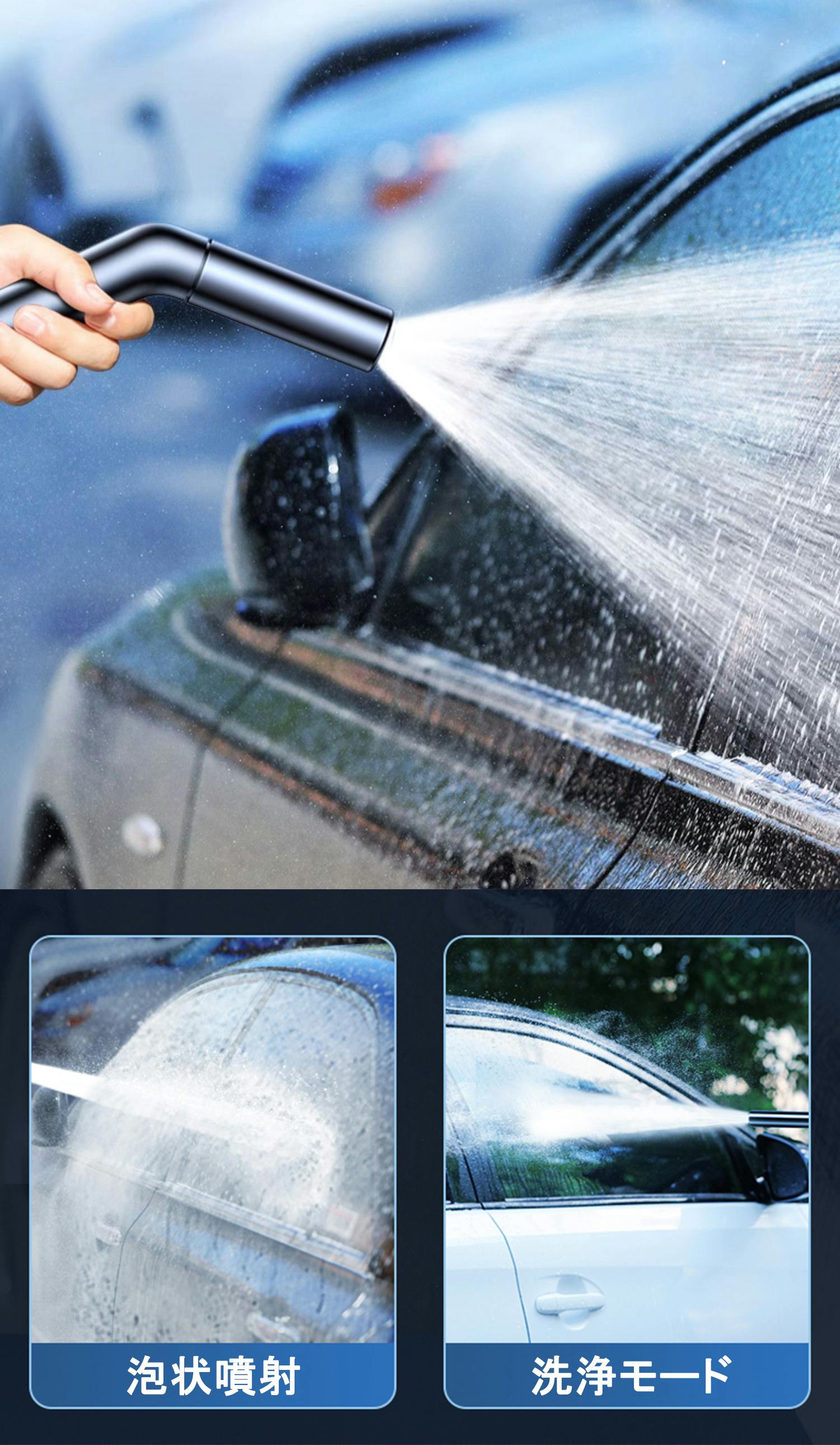 洗剤ボトルが付属しており、洗剤を容器に入れることで、洗剤と水を混ぜて散水できます。泡の量も調節可能で、洗車に便利です。