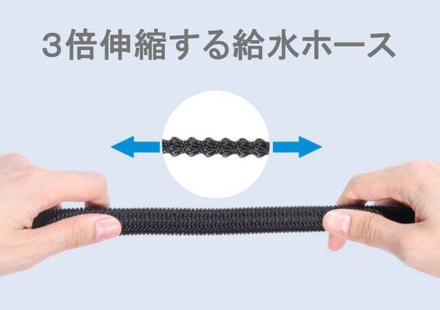 ホースは伸縮性があり、通常の長さの3倍まで伸ばすことができます。収納時にはコンパクトになります。
