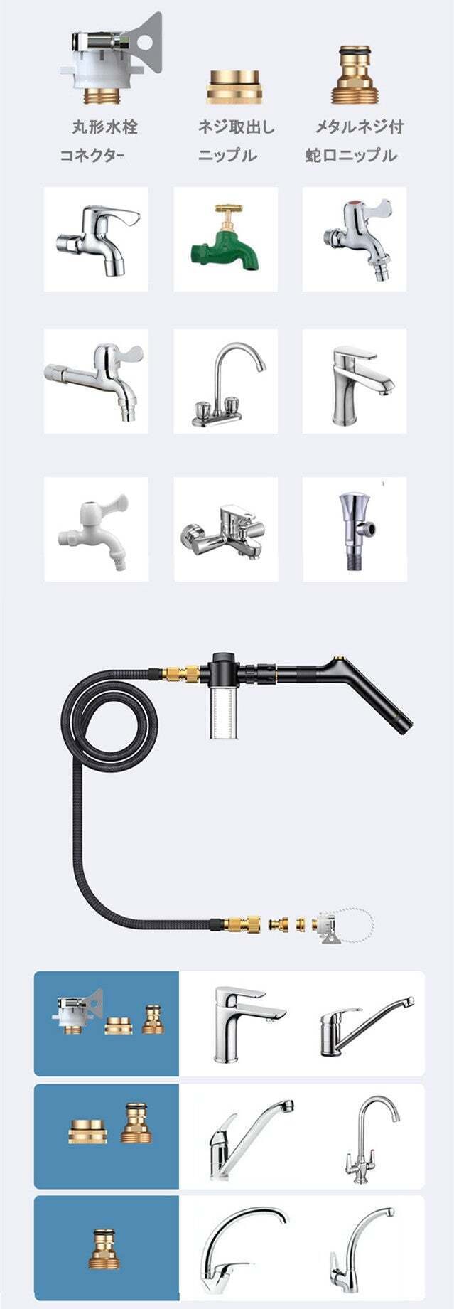 ※基本的には一般家庭用の蛇口に対応していますが、一部特殊なタイプの蛇口には対応できない場合があります。