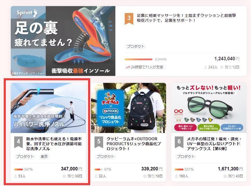 本日のCAMPFIREランキングのプロダクト部門4位に入賞することができました!