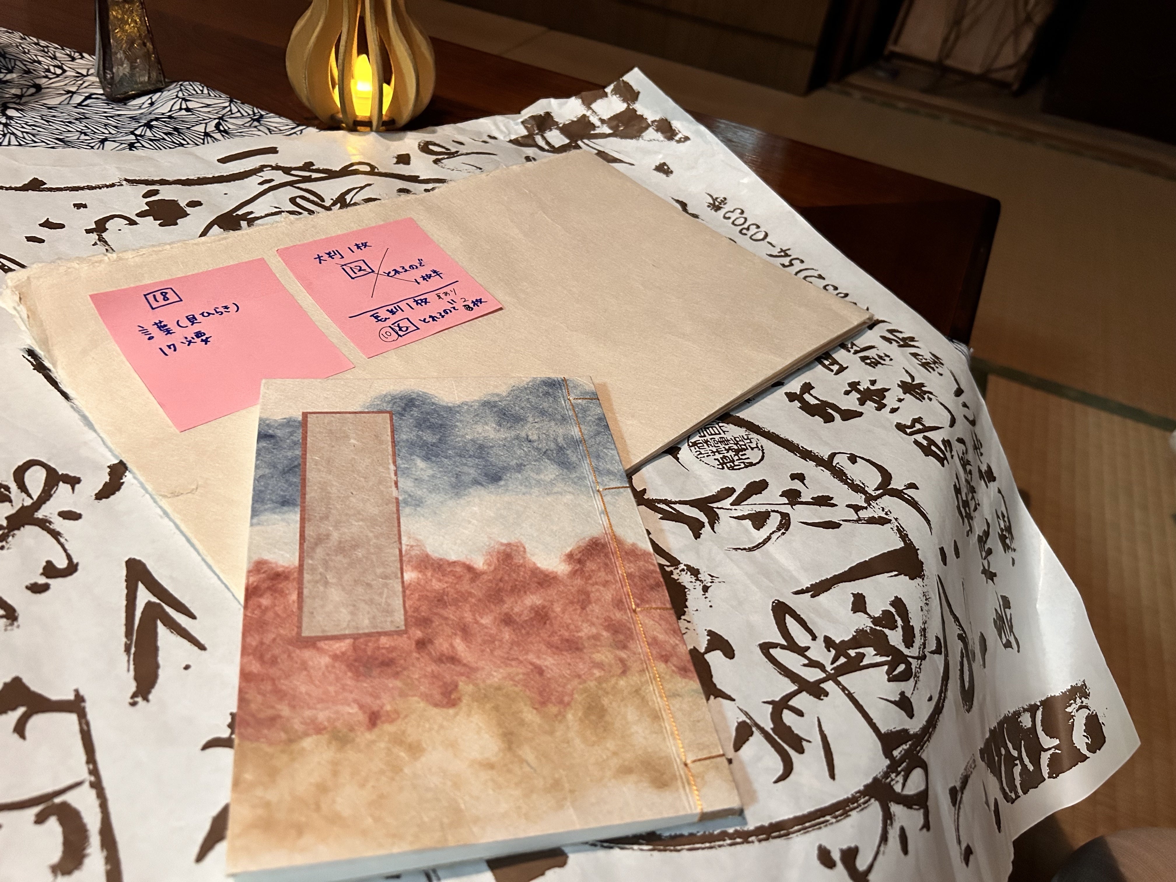 今日は本作りの第一段階、どんなふうに仕上げるかを考えていた時の写真です。写真のような和綴にしたいと思い、何ページにしてどんな和紙を使うか、開き方はどうする?一片は裁断せずに「耳」と言われる部分を残した作りにしよう!などなど・・・安部榮四郎記念館の学芸員さんと私の考えた本を実現するにはどうするのが良いかアイデアを出し合いました。もしかして1枚は色紙が入ってもいいよね!どんな色が入っているかはお楽しみで!なんてクラファンのページに書いた以上にワクワクする仕上がりになりそうです!「本を作る」という工程だけでも無限の可能性がありますね!