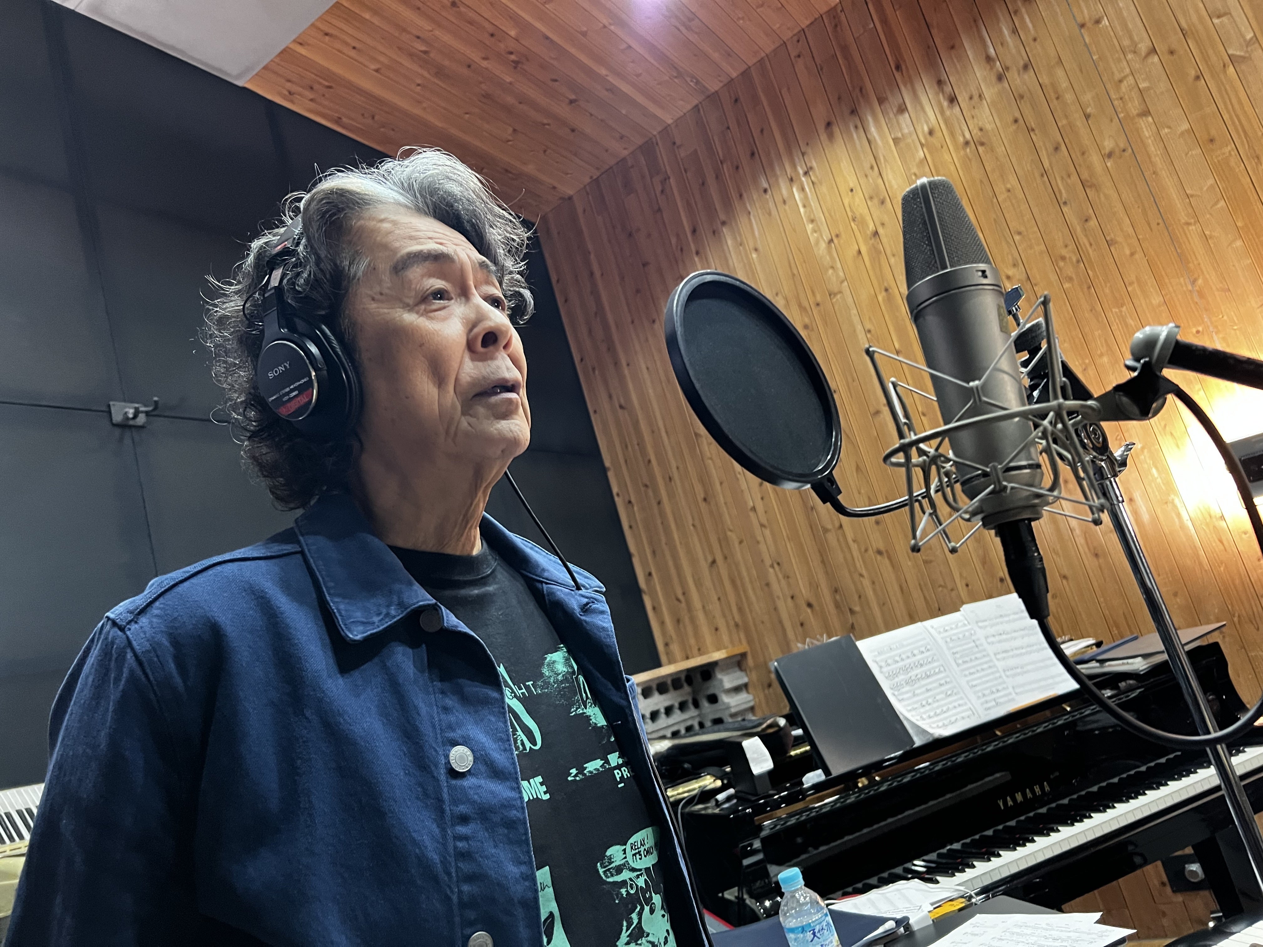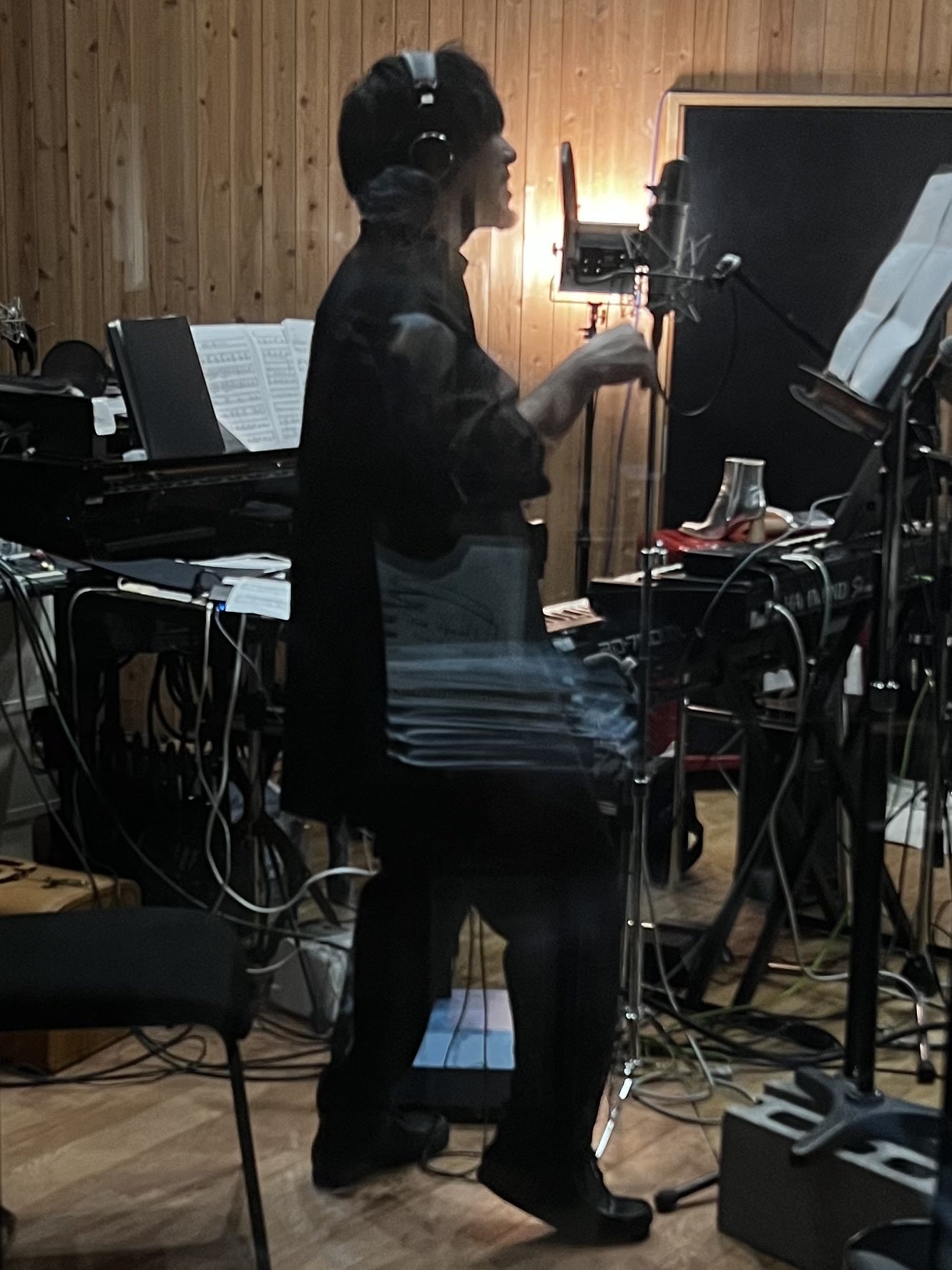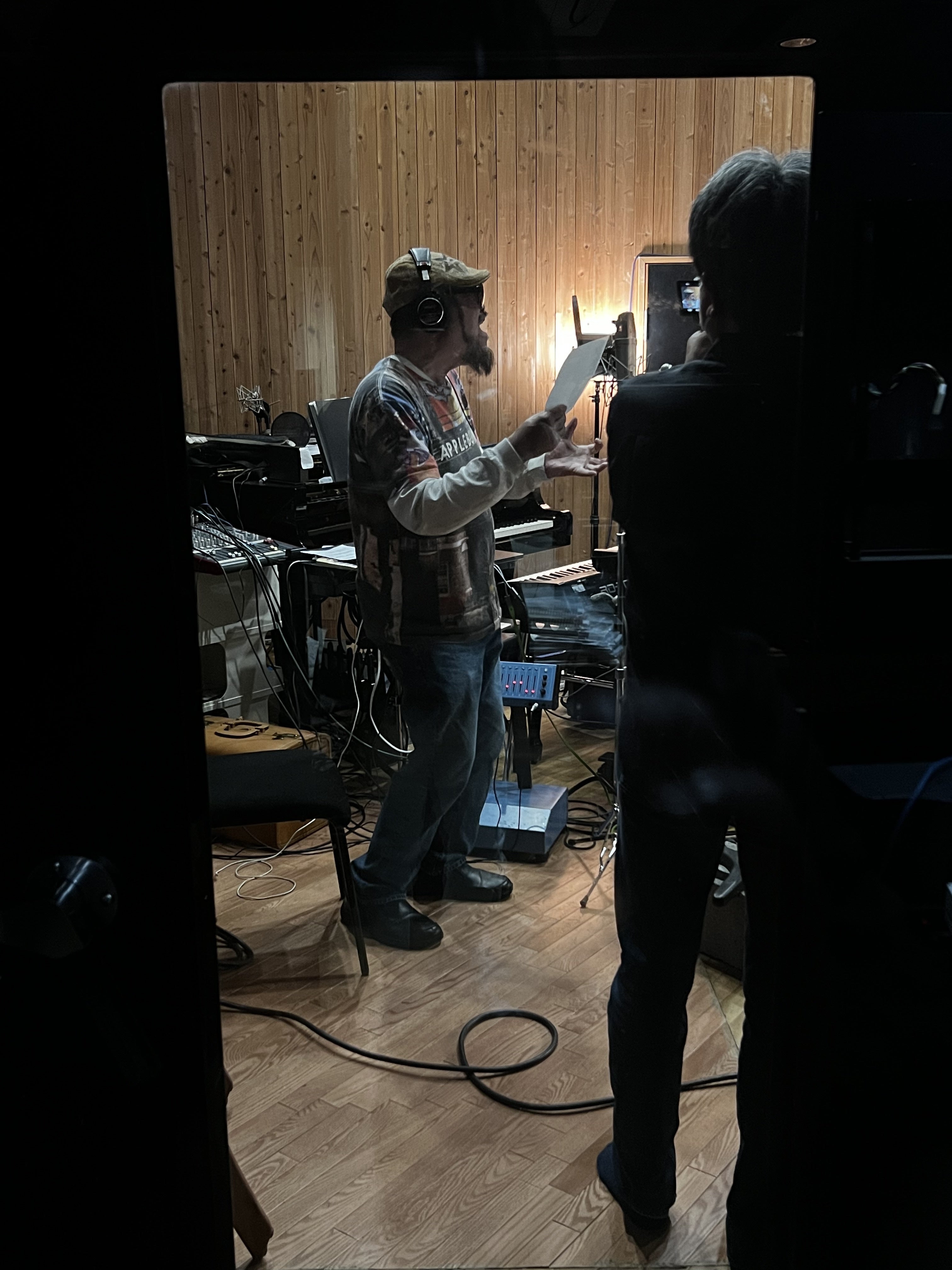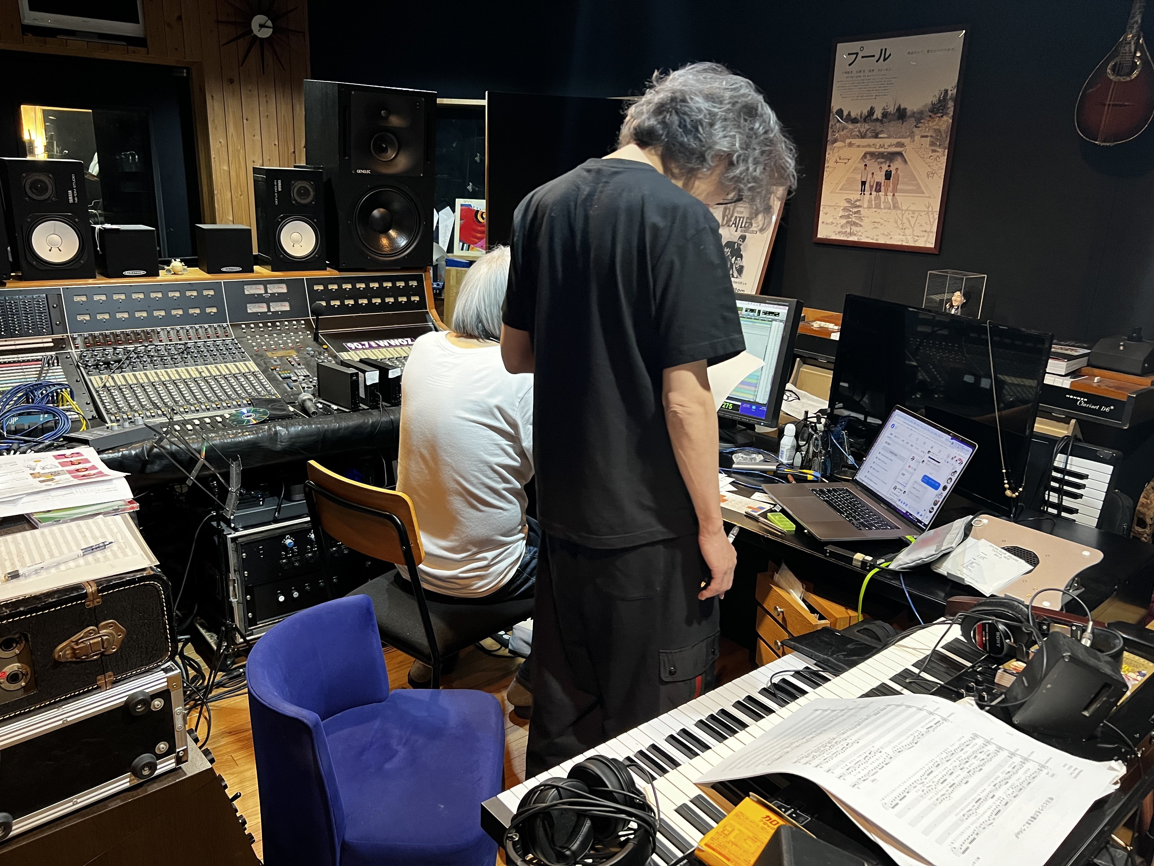 金子隆博君のスタジオ「フラッシュライトスタジオ」で、今日からレコーディングスタート。まずは男性陣の歌入れ。アンダーグラフの真戸原直人君、長谷川初範さん、ジェームス小野田さん、そして僕の4名が金子君の指示のもと歌ってます!