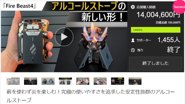 2023年12月にmakuakeで実施をしていた アルコールストーブ「Fire Beast4」は、