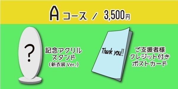 ★皆様からのご支援で製作した衣装を着たぎゃうのアクリルスタンドとご支援者様のお名前をクレジットしたお礼の記念ポストカードのコース。
