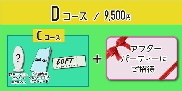 ★Aコースに加え、ロフトのチケットがついたコース。当日ぎゃうの晴れ姿を会場でぜひ見守ってください。チケットの発送は7月上旬の予定で、リターンの発送とは別になります。当日は別途1Drink代がかかりますのでご了承ください。