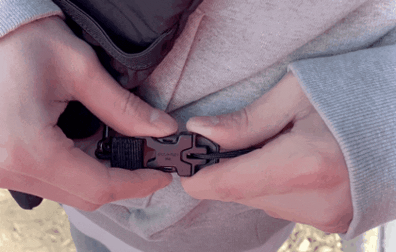 これは釣り系ギアなどで使われている仕様で、親指でパチンと簡単に開け閉めできる感触がクセになる!