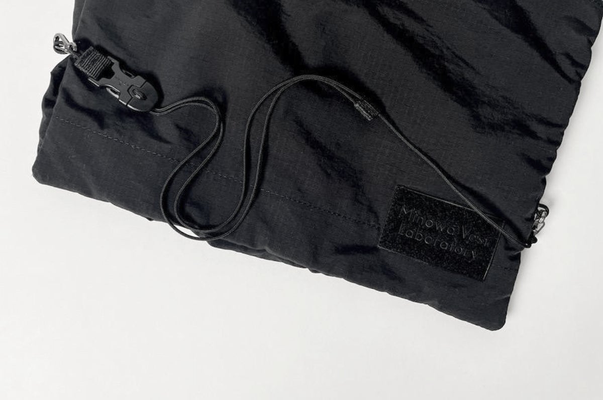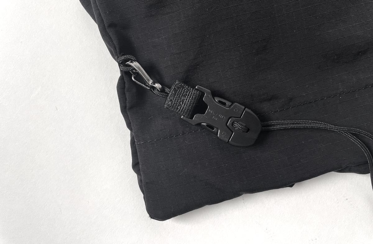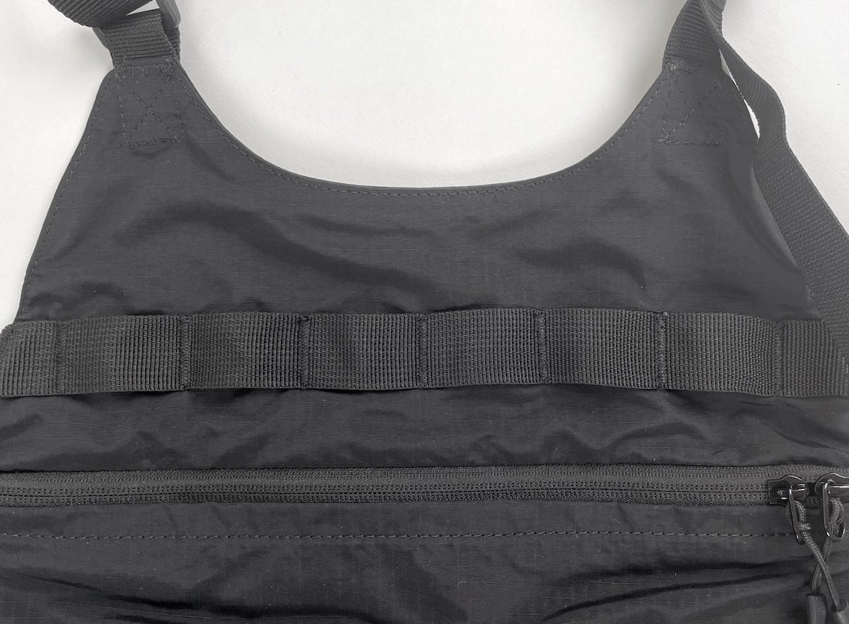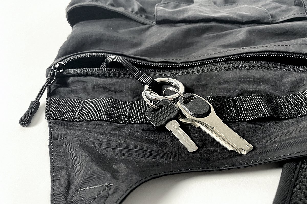 どんなコーディネートにも合わせやすい、リップストップナイロン地のブラックカラーを採用。ミニマルなデザインだからこそ、普段着に合わせても違和感がありません。