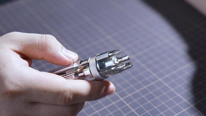 まず一つ目は、「磁気吸着」機能。SYMTIK S1は先端に磁気を内蔵しており、ネジやビスを取り外す際に非常に便利です。従来のドライバーツールでは、ネジを落とさないように気をつける必要がありましたが、SYMTIK S1なら磁気吸着によってしっかりとネジを保持してくれます。これにより、細かい作業でも安心して行え、作業中のストレスを軽減できます。
