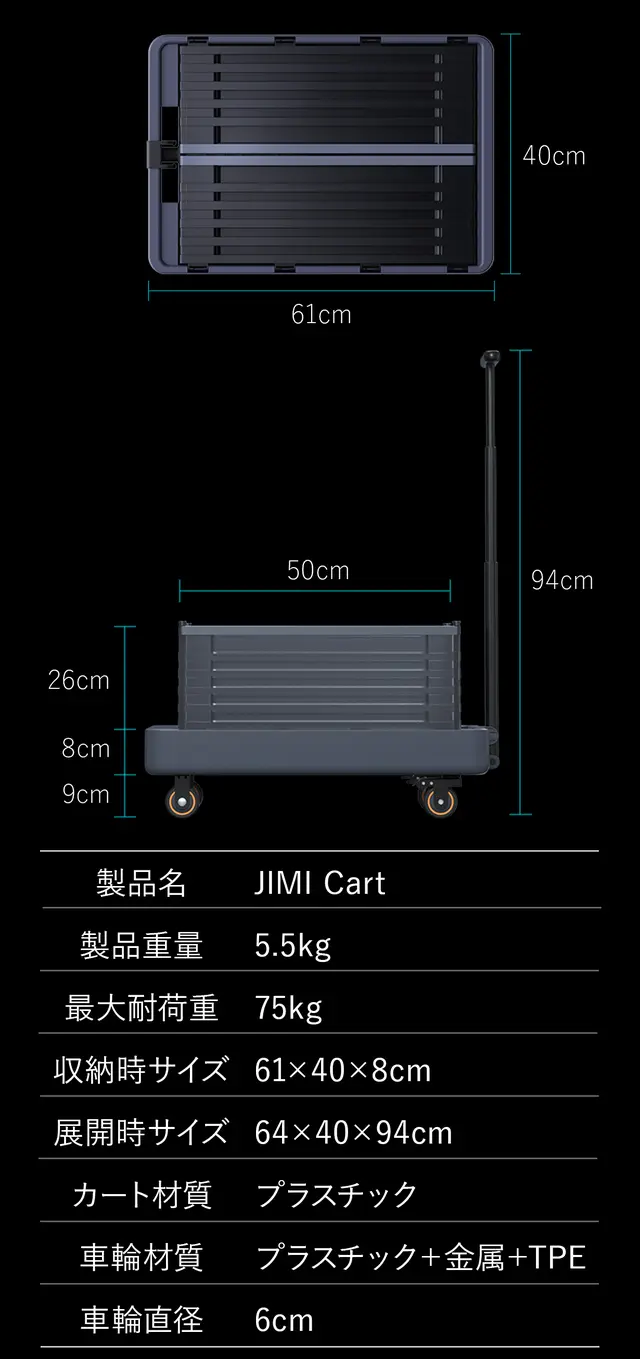 JIMI Cartは日常生活で使いやすい、コンパクトでシンプルな2wayキャリーカート。