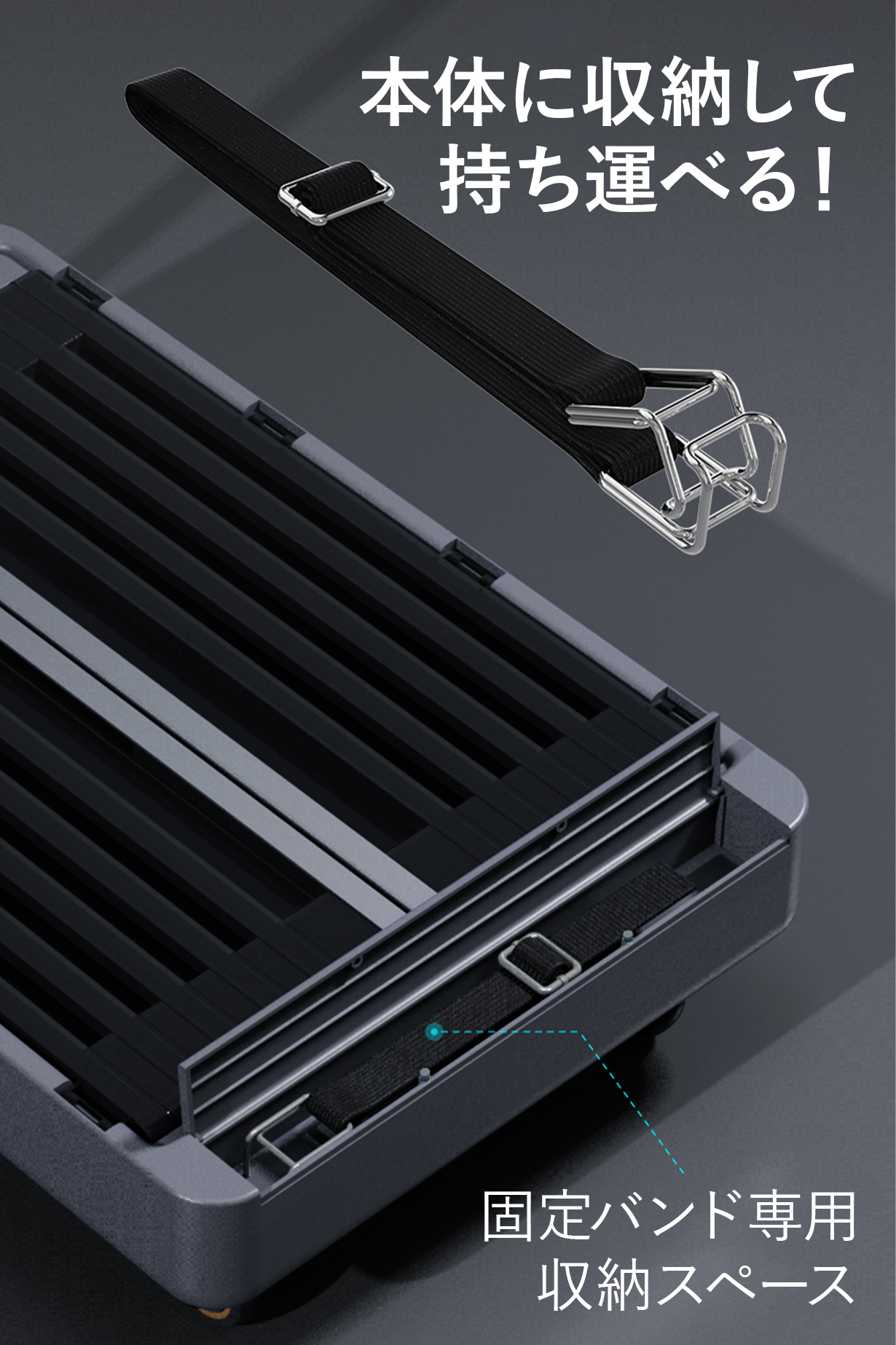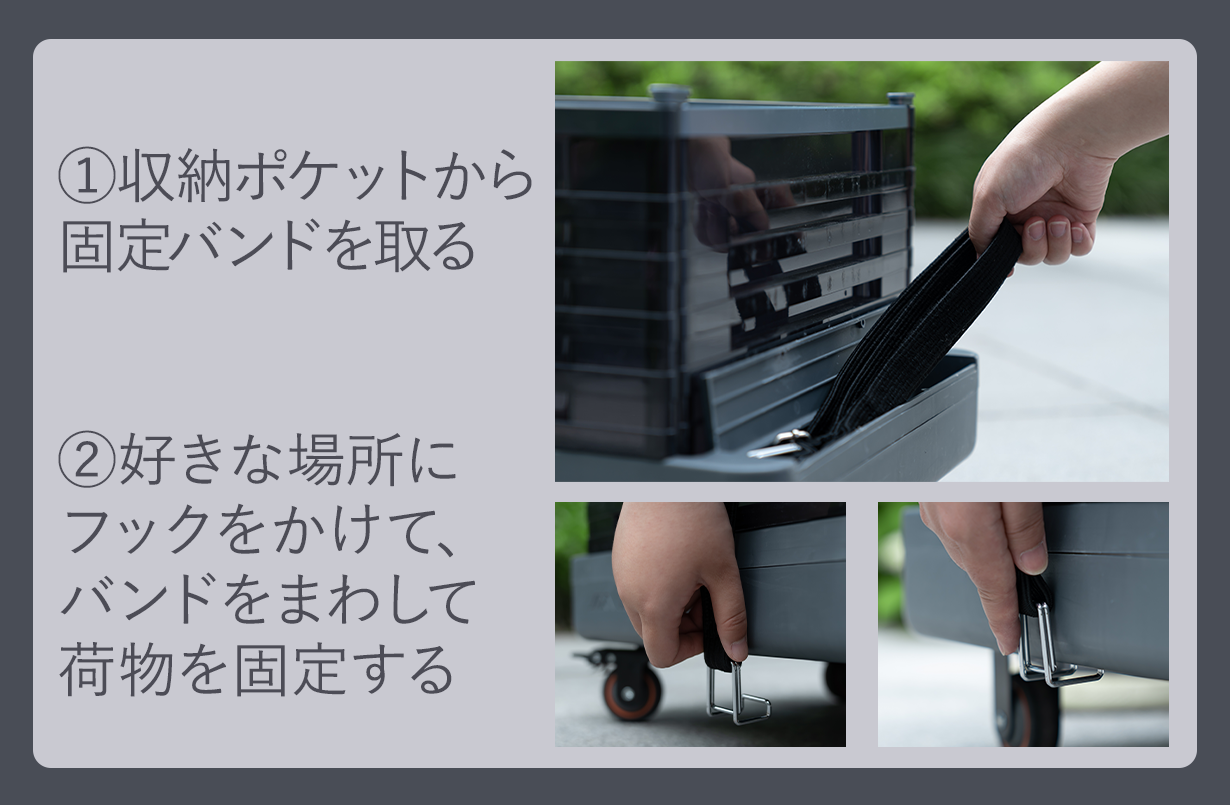 そんな時に専用固定ゴムバンドを使用すればしっかり押さえながら移動できます!