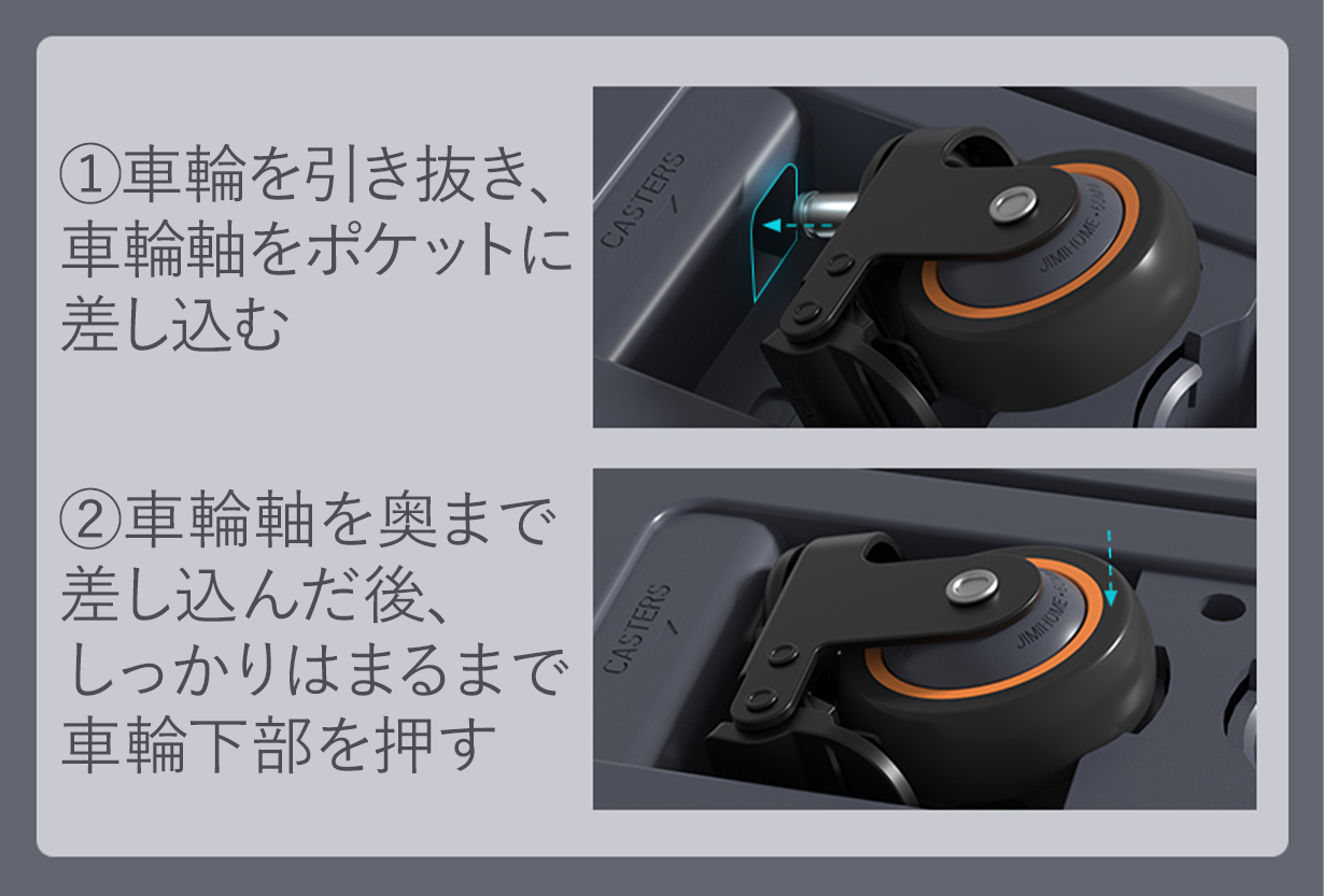 ※前輪は差し込み後、ロックを解除してから使用してください