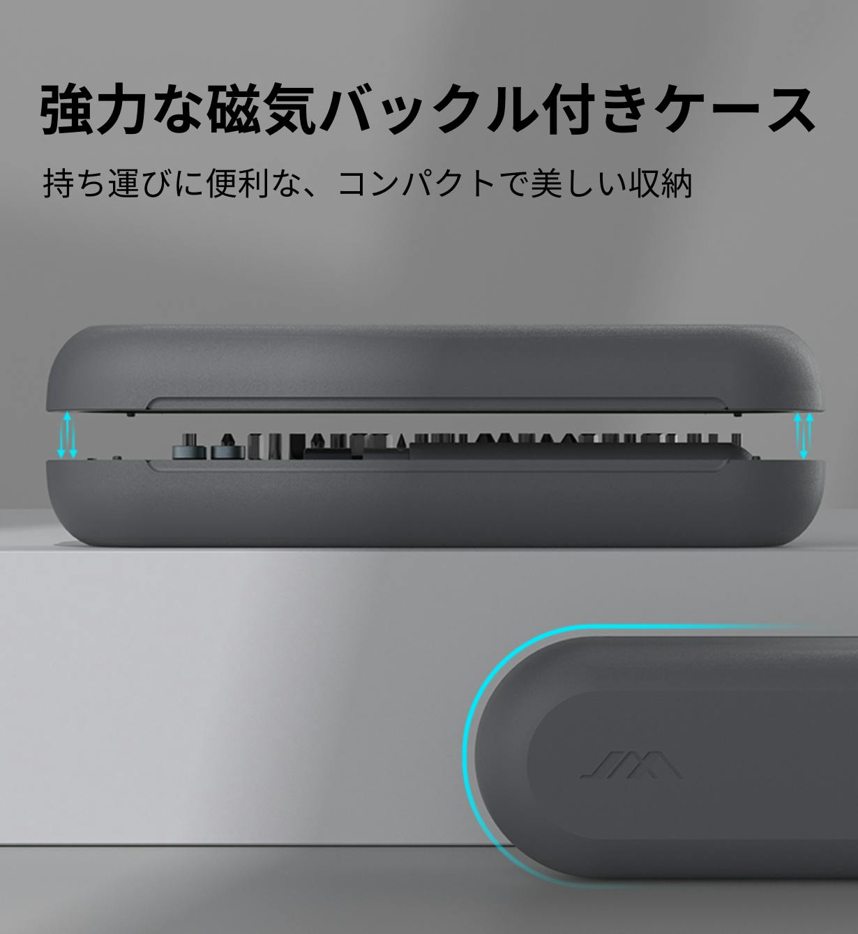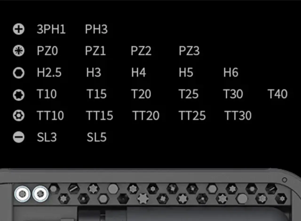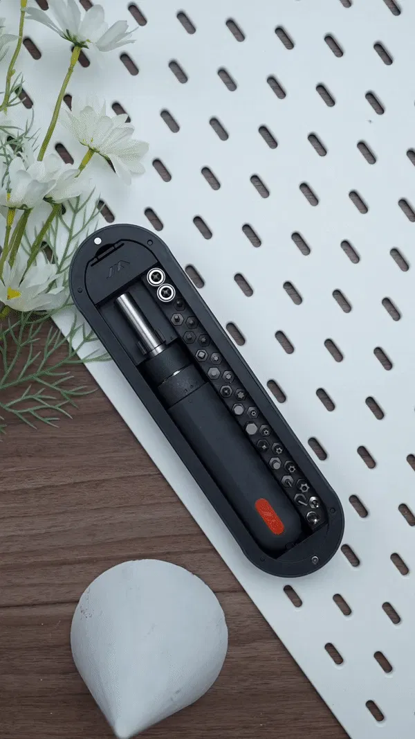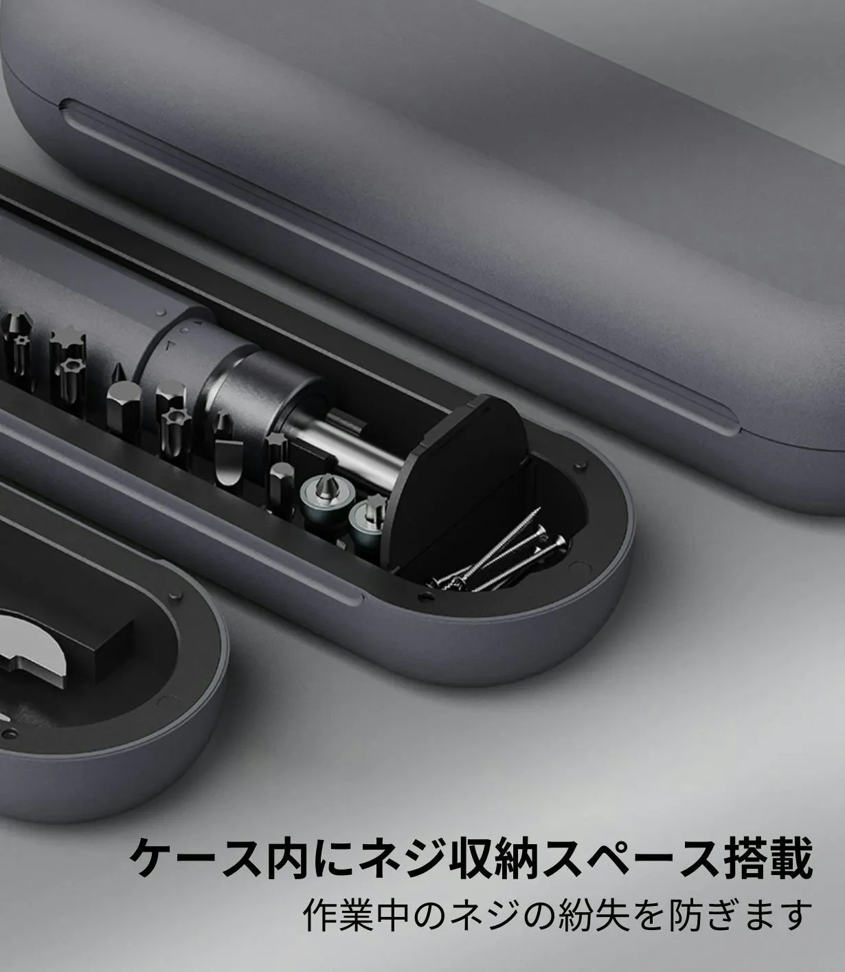 本体やビットの素材には高品質なステンレス鋼、ABS、TPEなどが使用されており、優れた耐久性だけでなく品のある高級感も備えています。ドライバー本体のハンドルは使い心地や握りやすさを追求して設計されているので手によくなじみフィットします。シンプルかつコンパクト化を目指したケースにはネジ収納スペースも備わっており、作業に使用するネジを紛失する心配もありません。