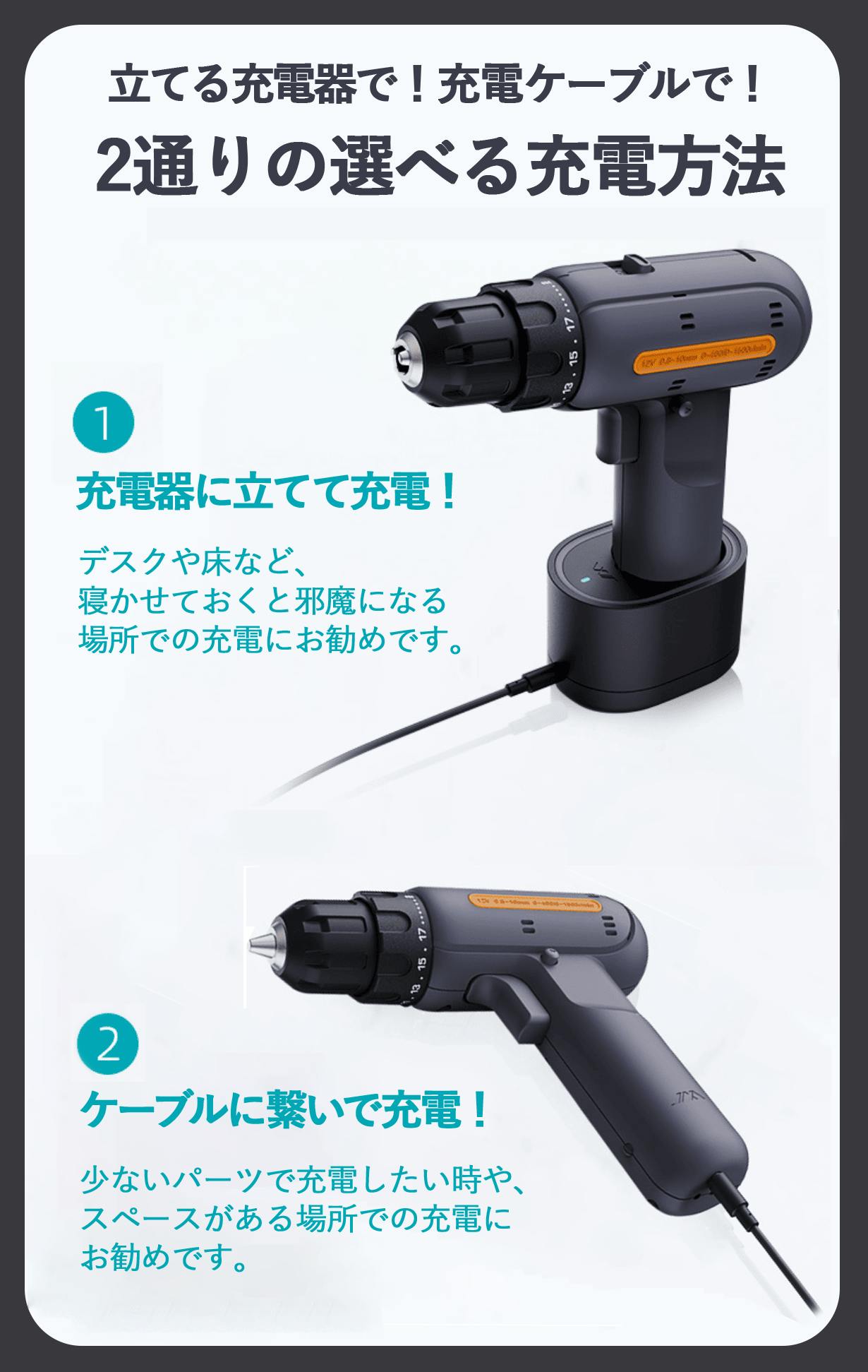 シンプルでスタイリッシュなドリルドライバー&充電器は、デスクに置いておいても浮かない洗練されたデザイン。