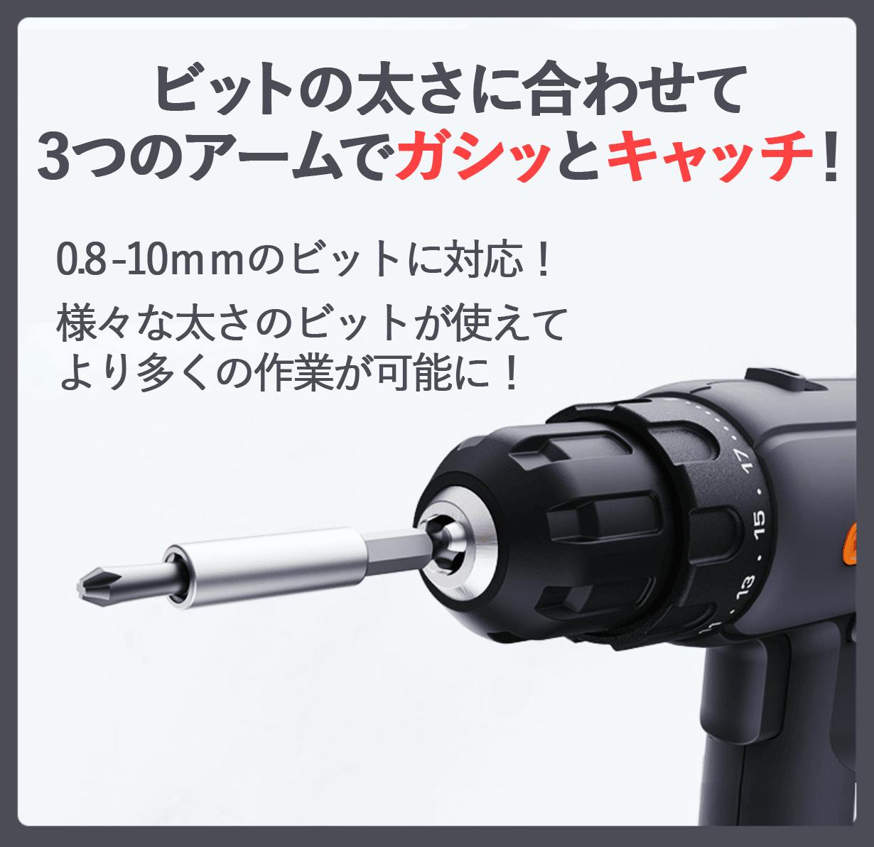 ビットホルダーは3本のアームでビットをキャッチする形式を採用!0.8-10mmの間なら太さの違うビットも使えます!