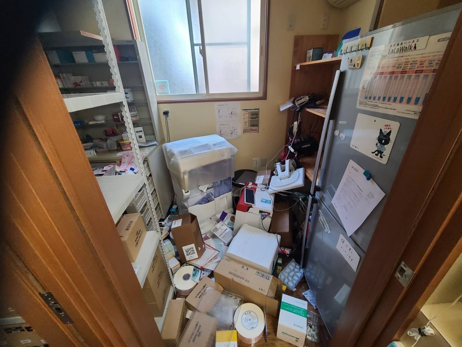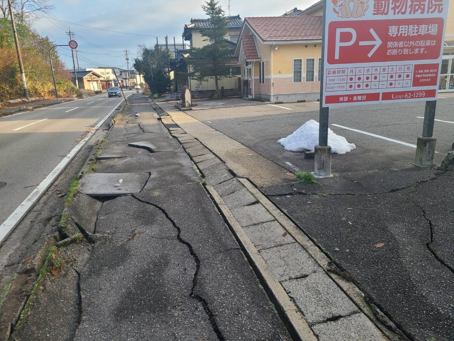 現在はほとんどの検査や処置が出来るようになりましたが、買い替えが必要な機器もあり、レントゲン室にも被害が出ました。建物に関しては外見の見た目はあまり被害が無いように見えますが、まだ詳しい調査は入ってはおりませんので詳しいことは分からないのが現状です。目に見えるところでは、内装はあちらこちらで亀裂が入り、裏側の地面は割れており2階の院長室と休憩室は歩くと軋む音が酷くしています。