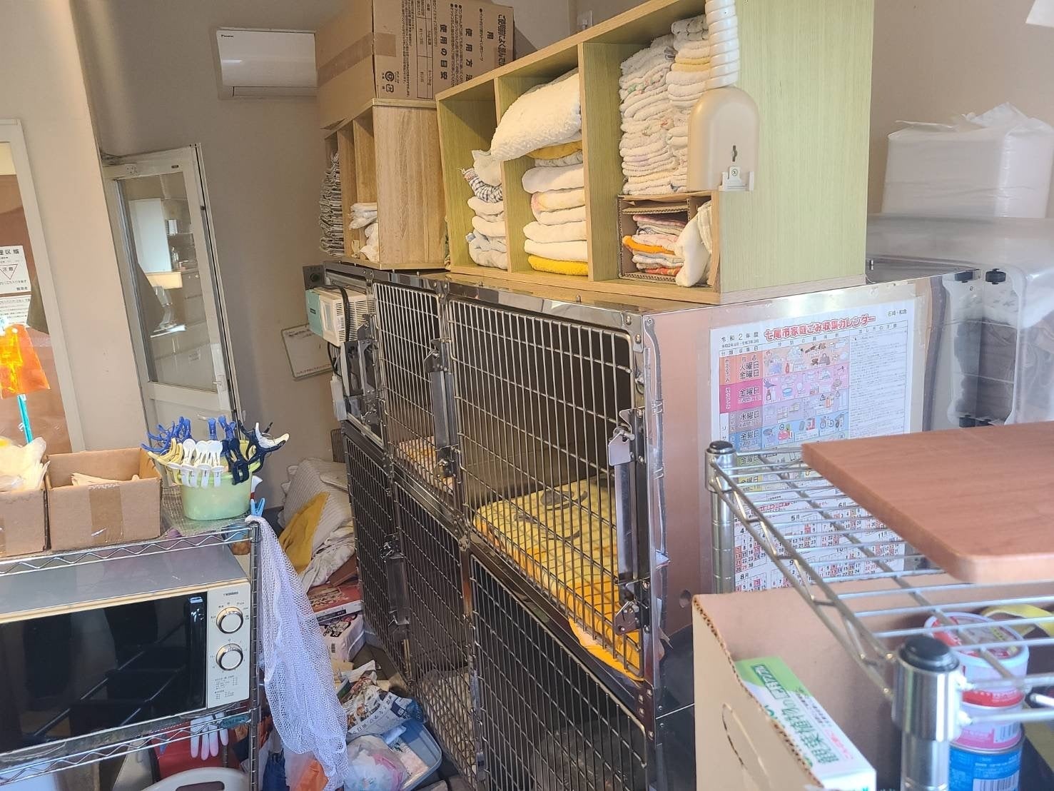 令和6年1月1日 16:10 石川県能登地方を震源とする未曾有の地震が発生し、当院のある和倉温泉も甚大な被害が出ました。この地震によって医療機器はことごとく倒れたり落下し、手術室では重い手術台が倒れ、入院室にあたっては100kg以上はある入院用のケージも移動し足の踏み場もない状態となりました。