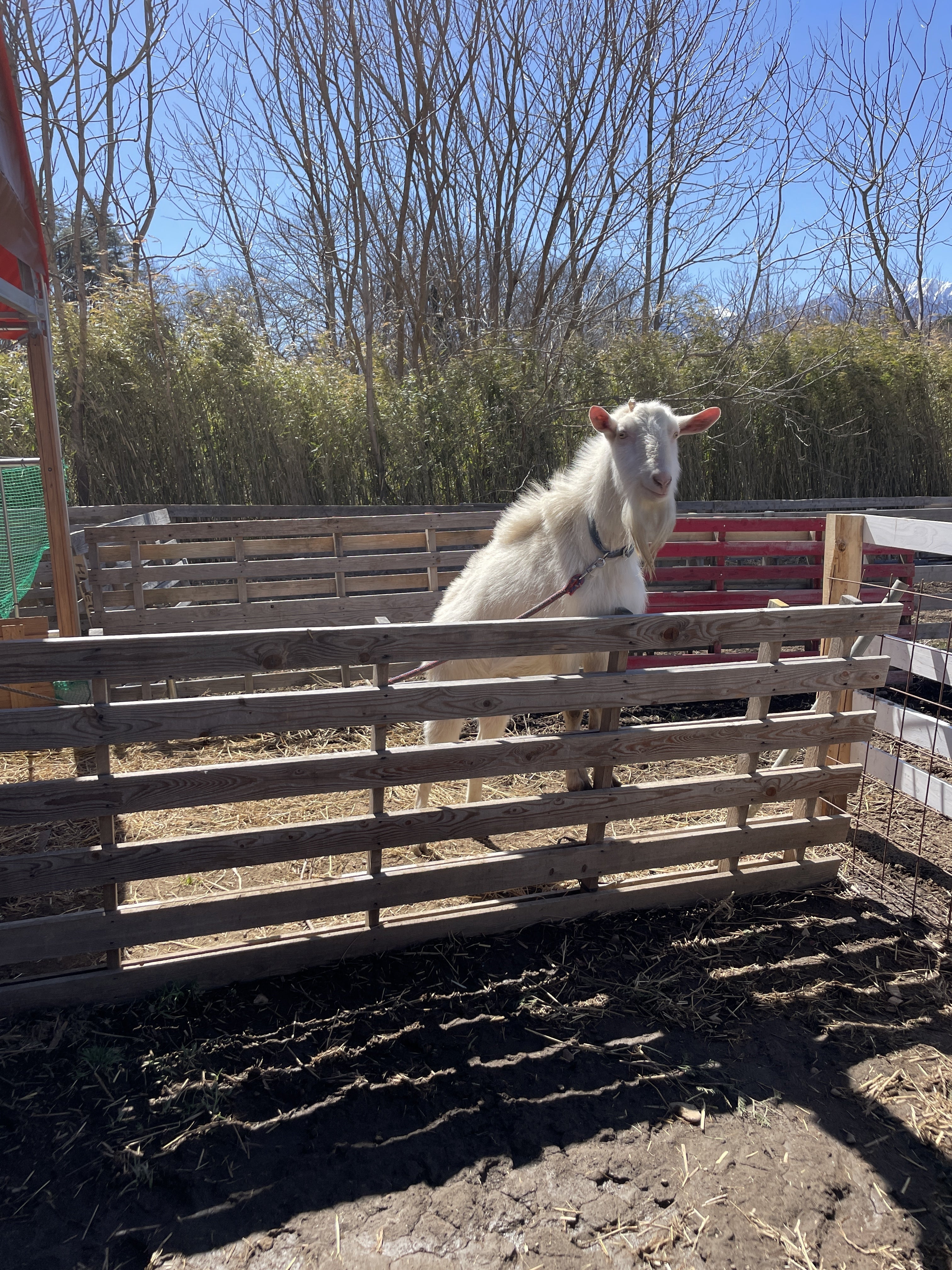八ヶ岳南麓の広大な自然の中、羊15頭、ヤギ15頭、烏骨鶏70羽を飼育中。