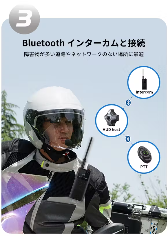 この製品は、ヘッドアップディスプレイ、GPS、ハンズフリーキット、および音声コマンドを組み合わせたオールインワンのデバイスであり、装着したままでも常に道路状況に注意を払うことができます。 スマホまたはインターネットに接続すれば、GPSシステムは正確な方向を示すため運転中に道に迷うこともありません。音声制御機能により、ハンドルを離したり視線を道路から外したりせずに、気軽に通話をすることも可能です。