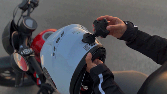 市販のHUDマウントはヘルメットの左側または右側に取り付けられます。これにより、ライディング時の風の抵抗や不安定性が生じる可能性がありますが、「MOTOEYE E6&E6 SE」のマウントはヘルメットの後ろに設置をするので、空気抵抗を減らし、ライディングをより安全にします。