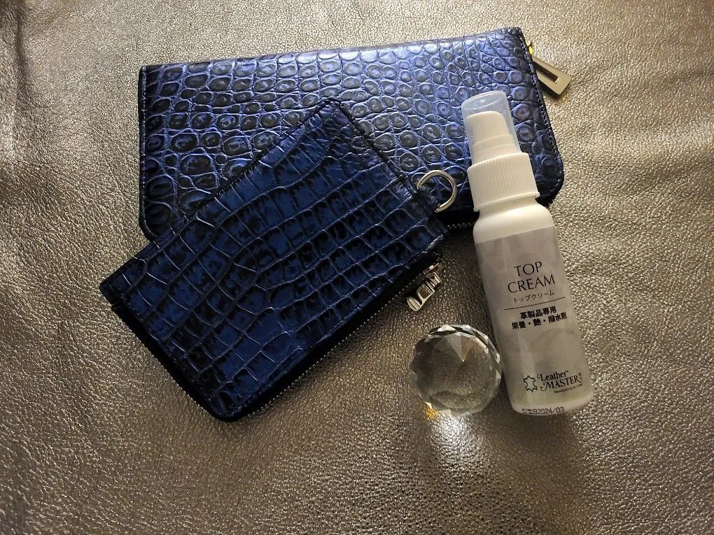 最後に、クロコダイル革は水分を苦手とする素材です。水滴など水分がついた場合は、すぐに乾いた布で拭き取ってください。