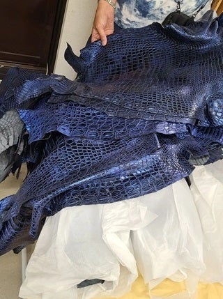 リターン発送の予定です。先週末から、ミットナイトブルーのクロコダイルの革が弊社に納品されました。早速、クロコダイル革の検品作業に入り、裁断も始まりました。また、イタリアヌメ革の納品も来週中にはがタリアから牛革さんの方に到着すると連絡いただきました。