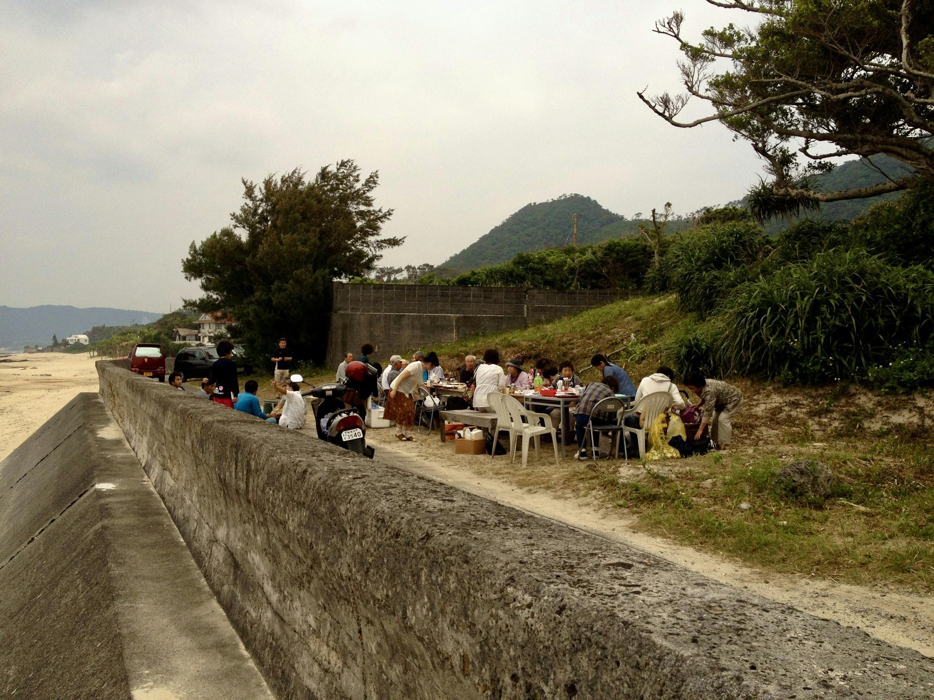 浜下れの日、夕暮れ時の浜辺にはご近所さんが勢ぞろいする。90歳を超えるオジ・オバから昔の集落や浜の様子、若いころの恋の話などを聞かせてもらっているうちに、オバがこの集落にしか伝わらないシマ(集落)唄を歌い始め、自然と幼馴染のオジの合いの手が入る・・・