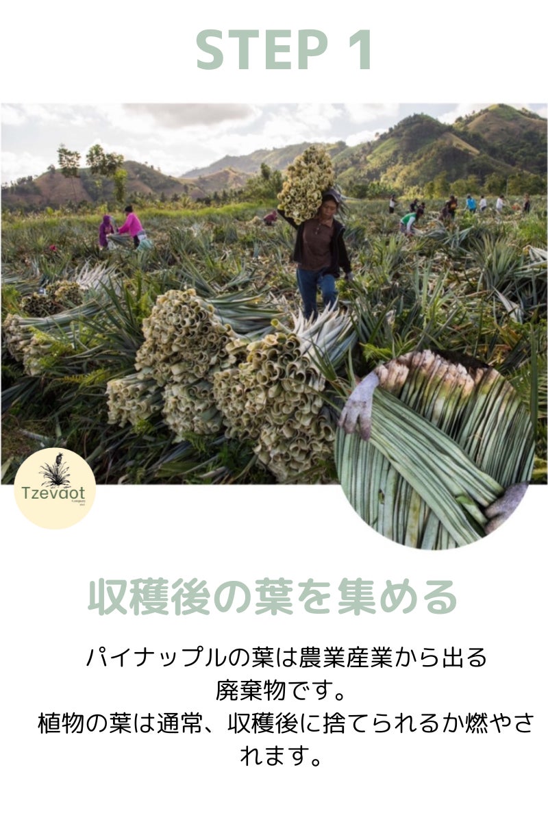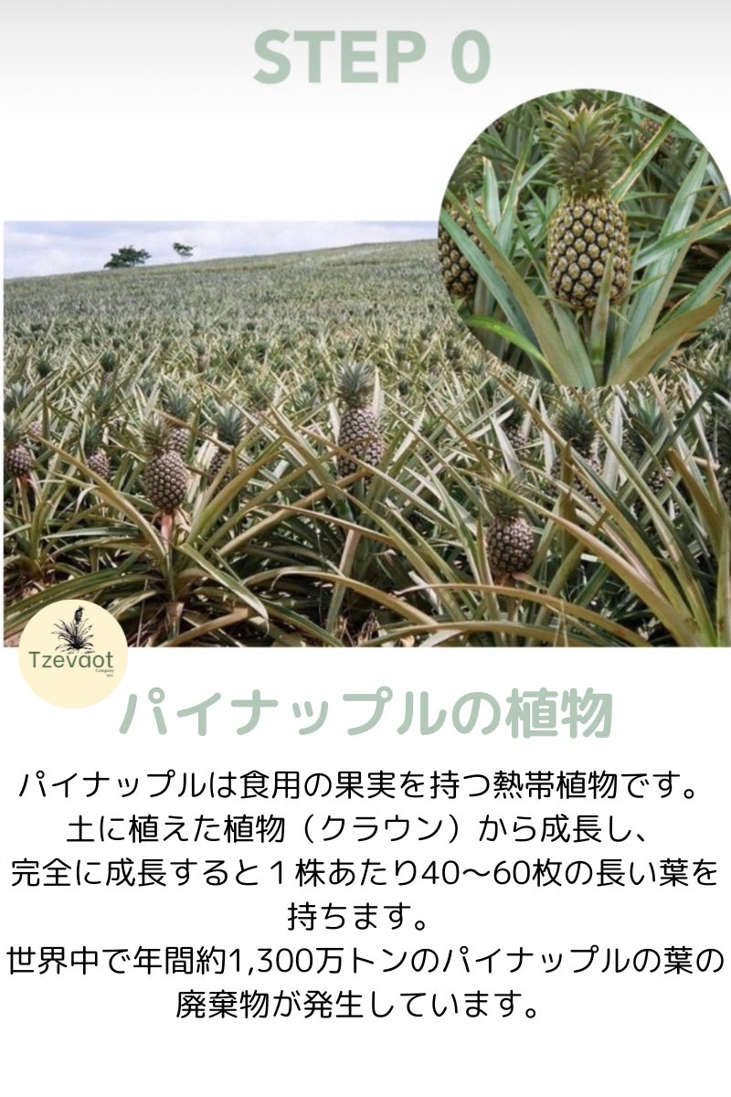 さらに、パイナップル産業の副産物であるパイナップルの葉を活用することで、廃棄物の削減、循環経済の促進につながり、最終的には森林破壊の緩和にも貢献します。