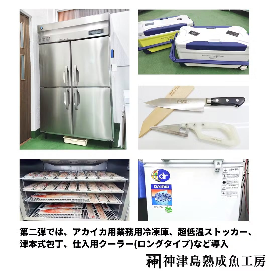 第2弾では神津島産【高級アカイカ(剣先イカ)】の為の業務用冷凍設備を導入し、独自製法で凍結した『活〆冷凍アカイカ』を沢山の方へ届ける事ができました!