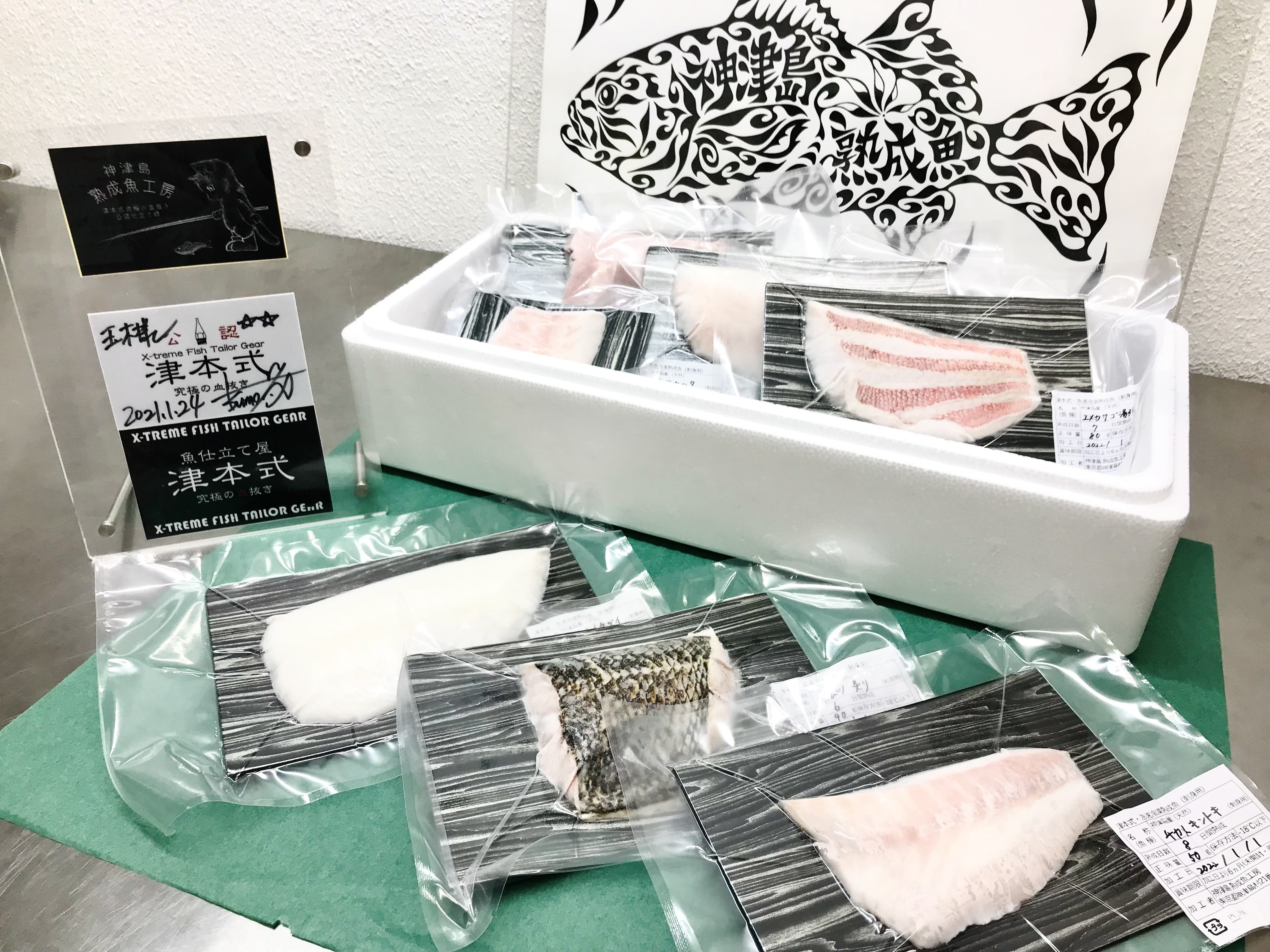 「津本式 究極の血抜き」では、腐敗の原因となる体内の血を徹底的に抜くことで熟成に最適な状態に仕立て、長期保存を可能とします。津本さんは現在、適切な魚の締め方や処理の仕方等YouTubeやSNSで広く情報発信されており、水産資源の保護・回復や魚食改革への取り組みに共感した為、試験を受け「津本式究極の血抜き公認仕立師」となりました。